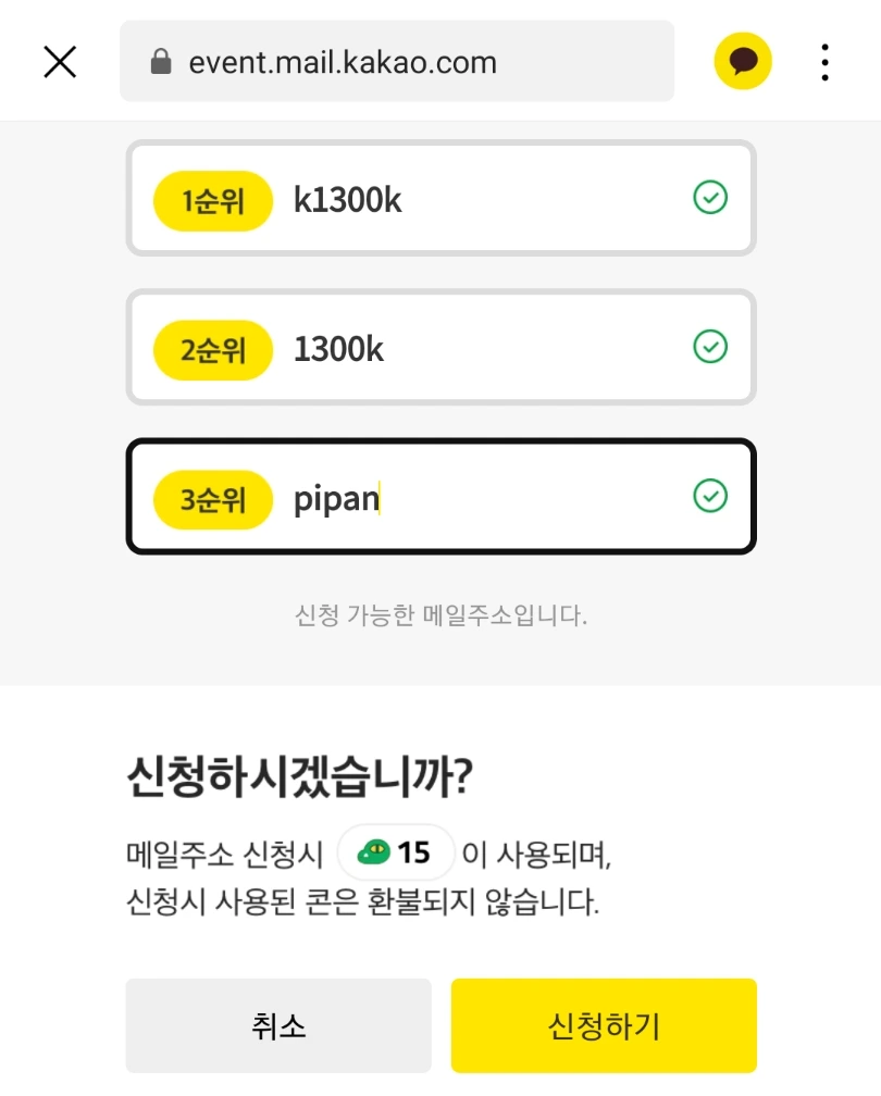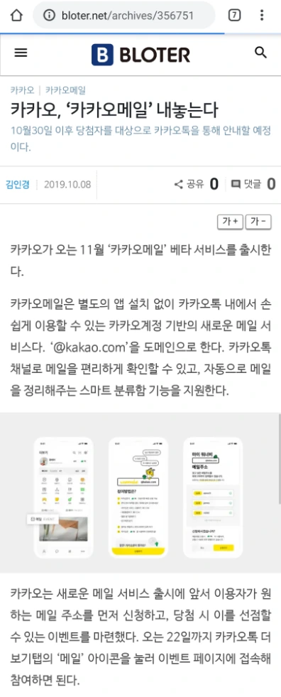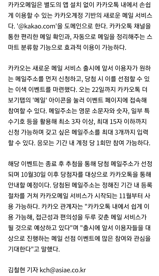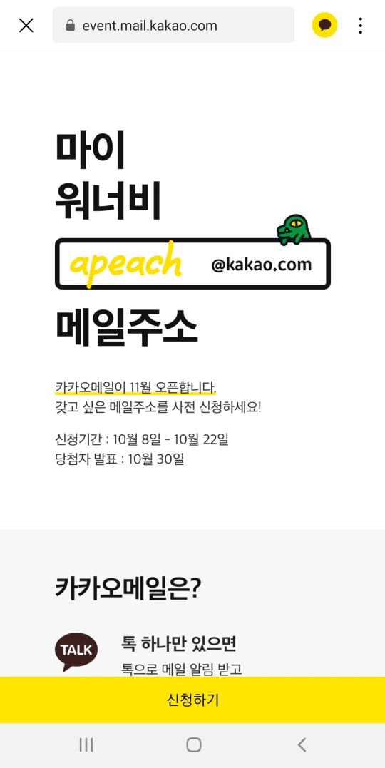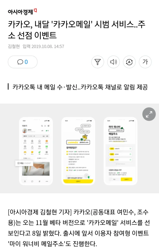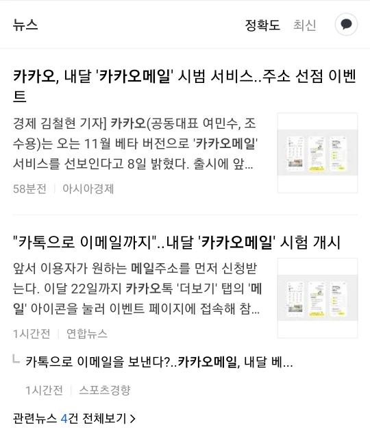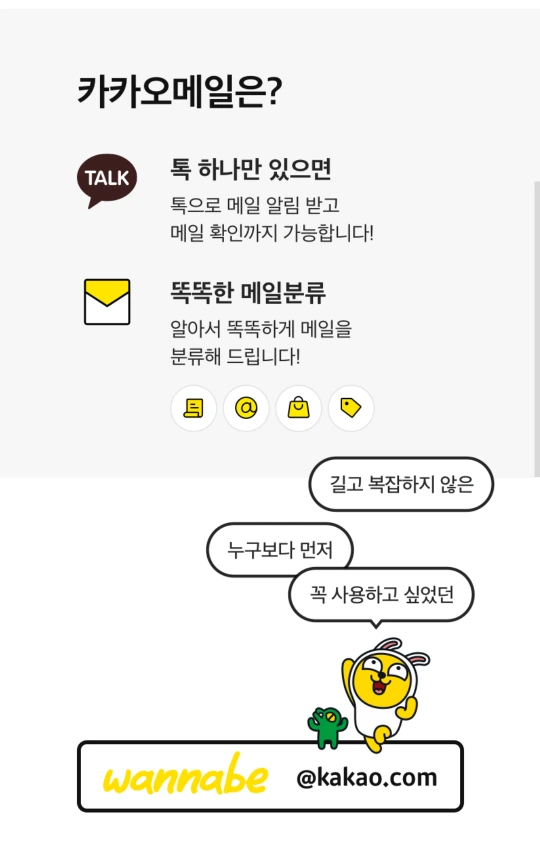 카톡에서 이런 거 하나 씩 하나씩 스멀스멀 기어 나오고 있고그러다 카카오브라우저, 카카오OS, 카카오PC, 카카오TV,카카오폰, 카카오Car 하여간 메일이다. 카카오메일이다.