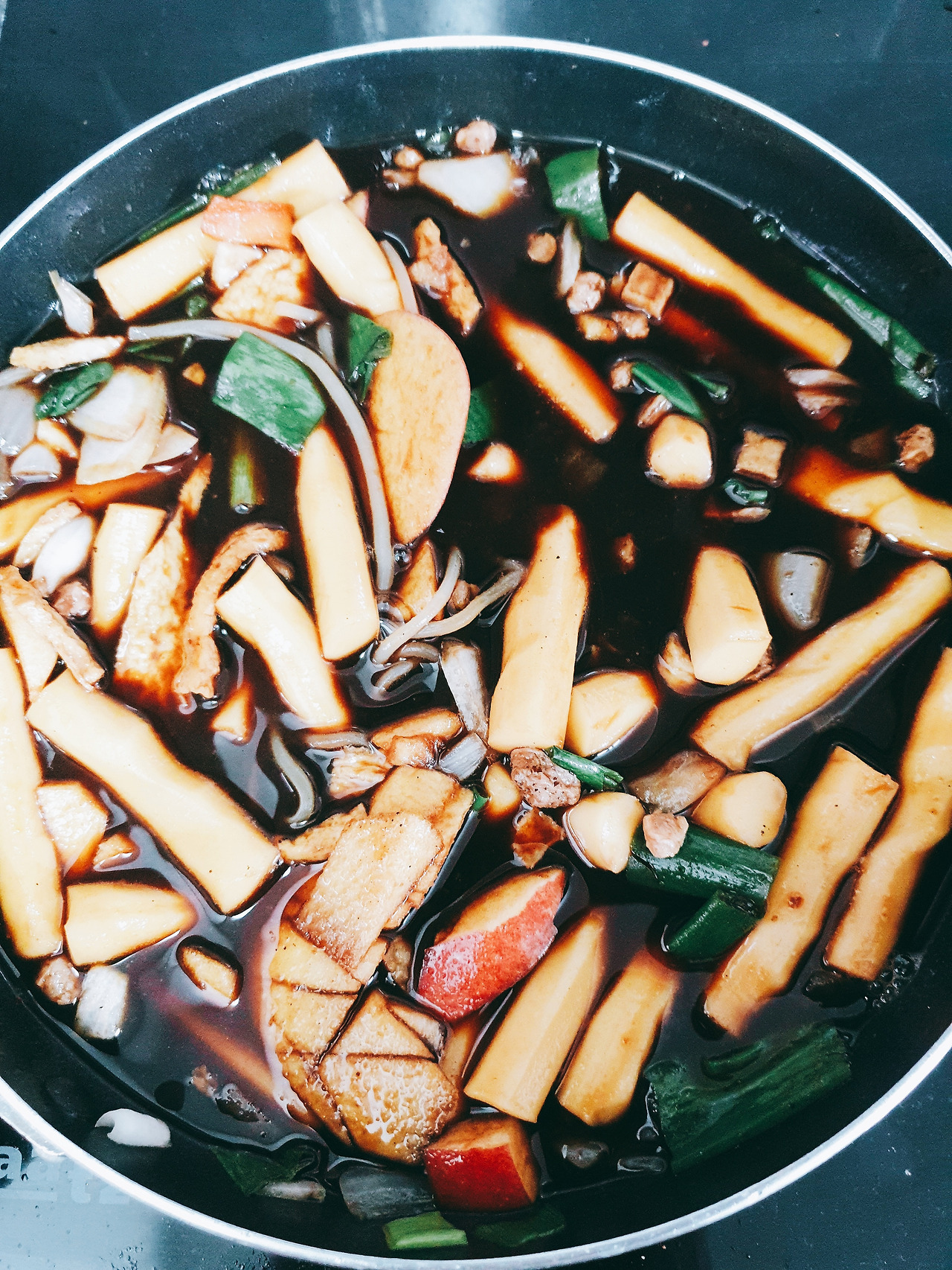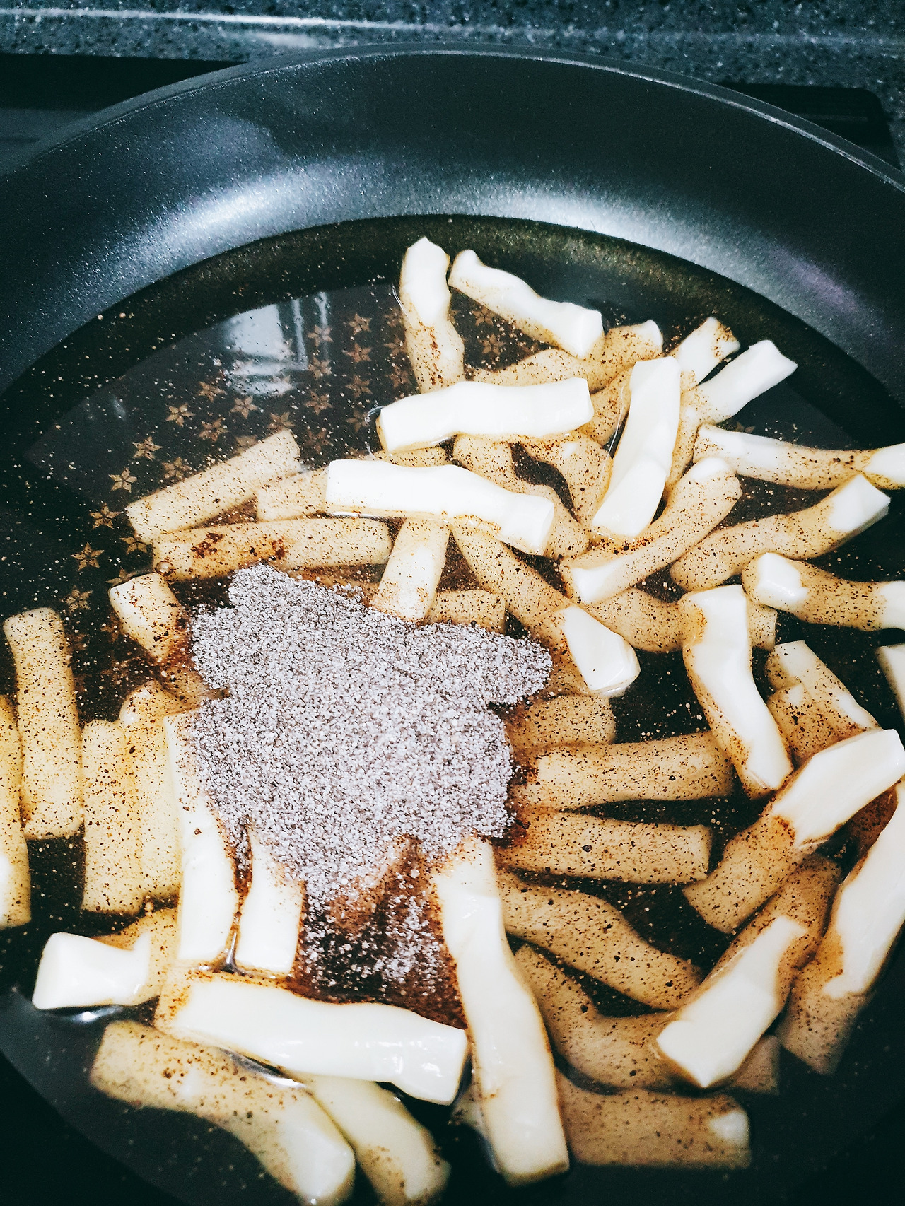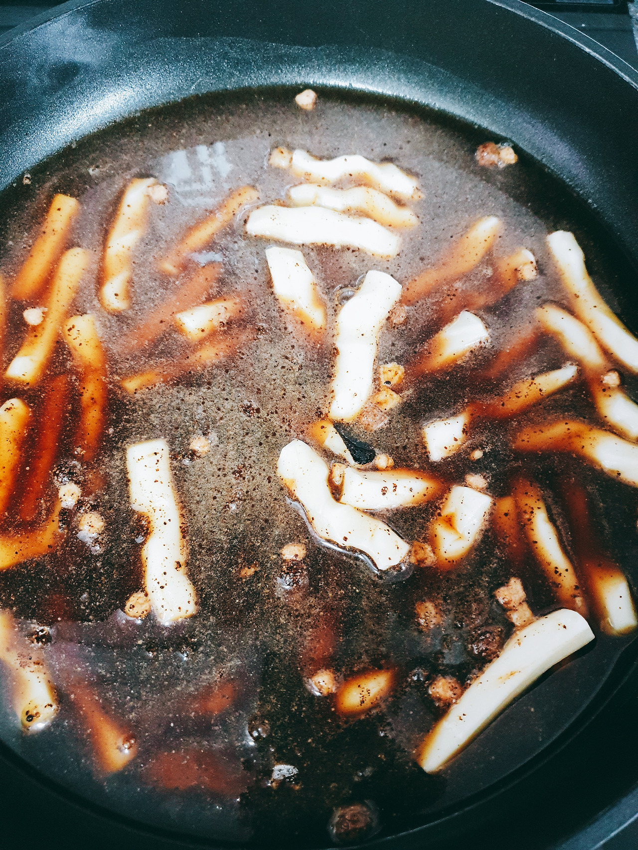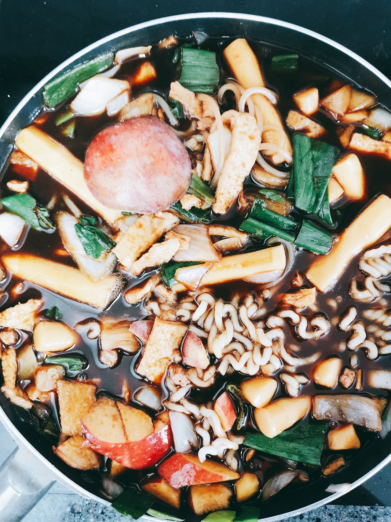 국물떡볶이 짜장떡볶이 둘 다 빨강떡볶이에서 사 온 것을 끓이는 것 밖에 없다. 안 매운맛으로 사 온 국물떡볶이 소스가 달게 느껴져서 추가 재료로 단맛을 없애고 풍미를 높인다. 그런데 매주 토요일 떡볶이도 슬슬 아이들이 질리기 시작하였다. 그래서, 새로운 메뉴에 대한 연구가 필요한 사항이다. 초간단 메뉴가 똑 있을는지..