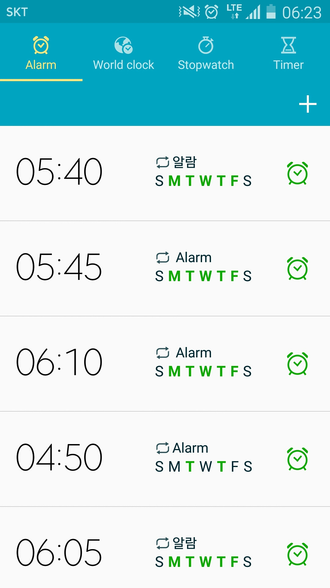 선풍기와 에어칸의 타이머는 모른척 할 수 있었지만, 스마트폰의 타이머는 어쩔 수 없음이다. 드디어 알람시간 5시 대역에 들어왔다.