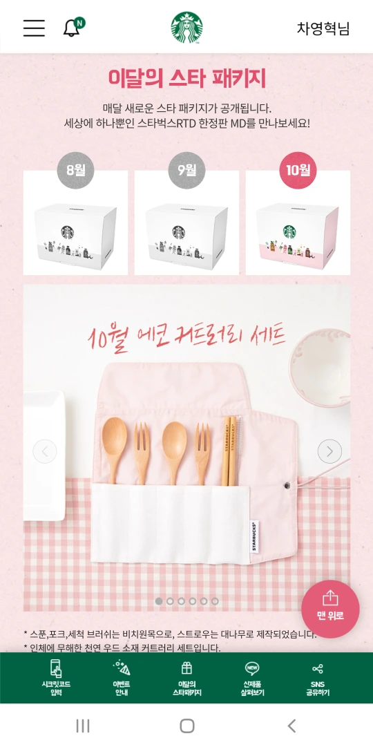 에코 수저세트나쁘지 않다. 스타벅스 로고로 더 간지가 난다.몇 년 전처럼 여러 번 경품 당첨은 어렵다.내년을 기대하며..