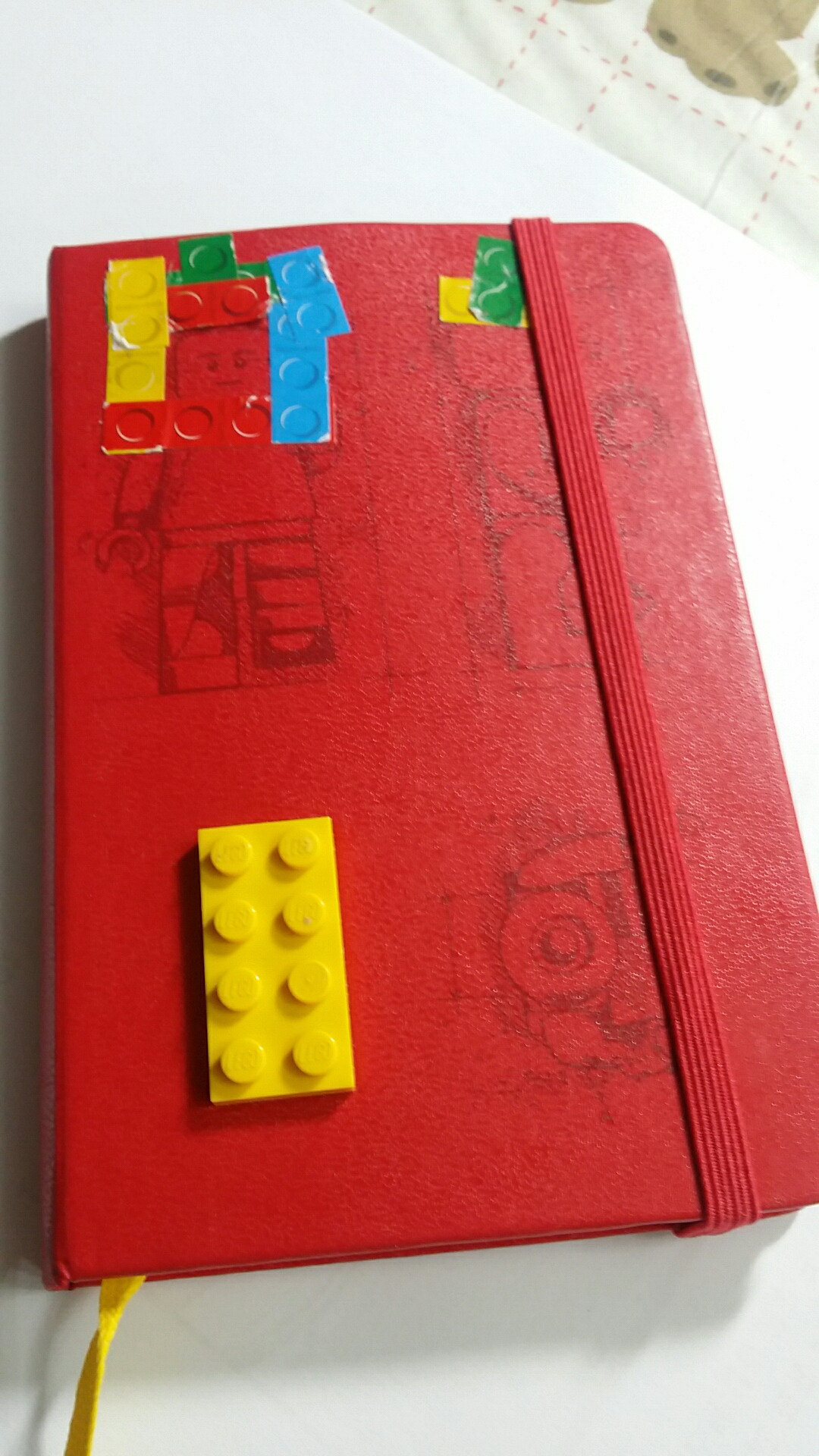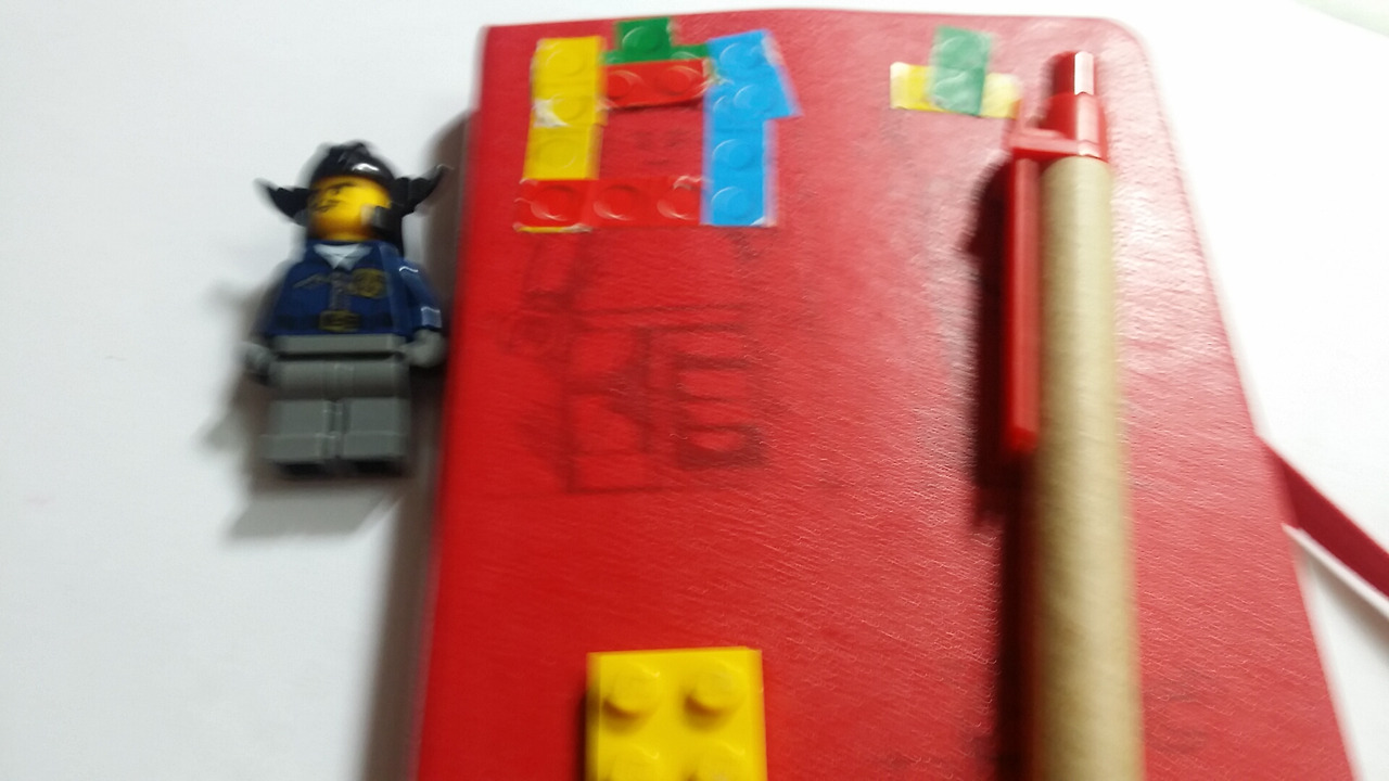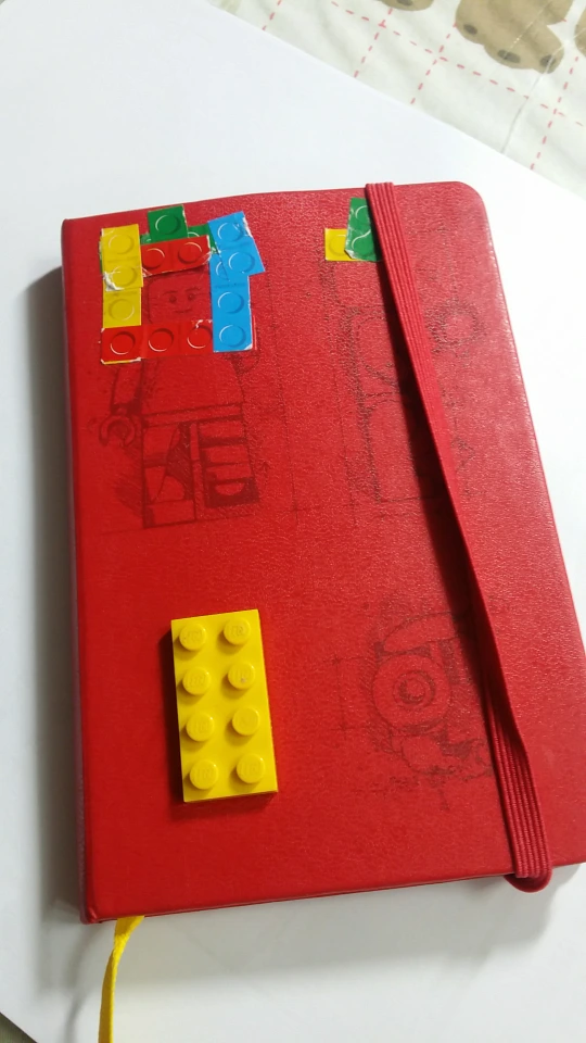 아들녀석에게 레고 하나를 달아 달라고 했다. 덤으로 표지에 몰스킨이 제공하는 레고 스티키가 덕지 붙여졌다.