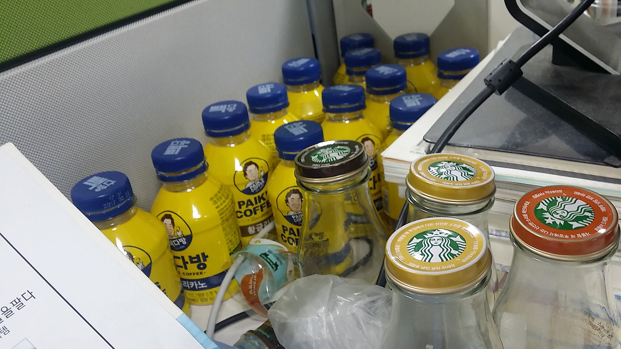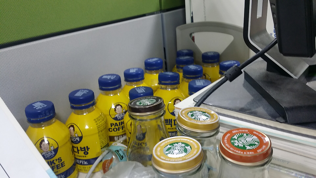 돌아보니 사무실 책상 한켠에 잡다함이 가득하다.