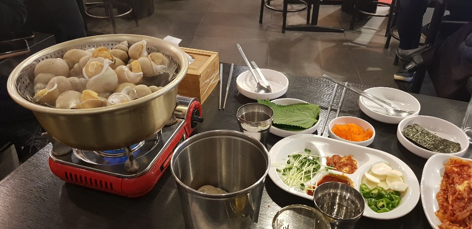 추운데 뜨끈하니 잘 어울리는 조합이다.다만 발라(?) 먹기가 만만치 않았다.가끔 한방에 쏘옥 빠질 때도 있지만 대부분이 골뱅이 빼먹기가 쉽지 않음이다.그래도 생각보다 엄청나게 배불렀다.그리고 스벅놀이는 계속되었다. 모임 전에는 나 혼자, 모임 후에는 다 같이 e프리퀀스 수집에 동참하였다.요새는 스벅 별 모으니 재미가 솔솔