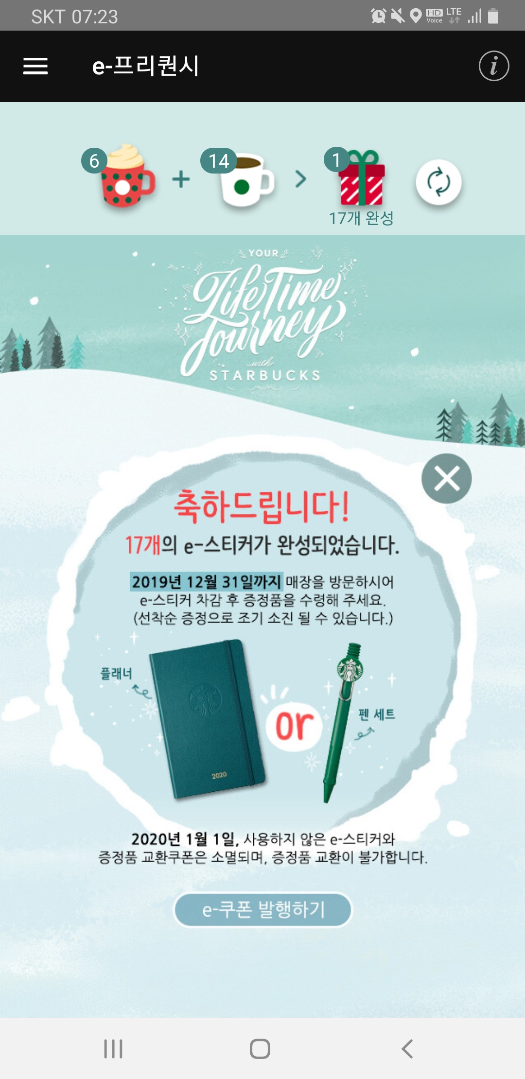 더블 플래너 득템 스타벅스다이어리,스타벅스플래너,이벤트 | 일주일에 17잔이다. 스타벅스 플래너 2권이라 솔직히 탐이 난다. 결국 나름 전략이 필요하다. 혼자로써는 솔직히 벅차다. 지원을 받아야 한다. 그리고 주변에 한 두 개 모은 지인 찬스를 쓰는 것이다. 물론 혼자 겁나 마시는 것도 꼭 필요하다. 견본품 중에 하늘색과 청록색 중 한 권 그리고 전체 4권 중 한 권이다. 그렇게 지난주부터 한 땀 한 땀 준비하