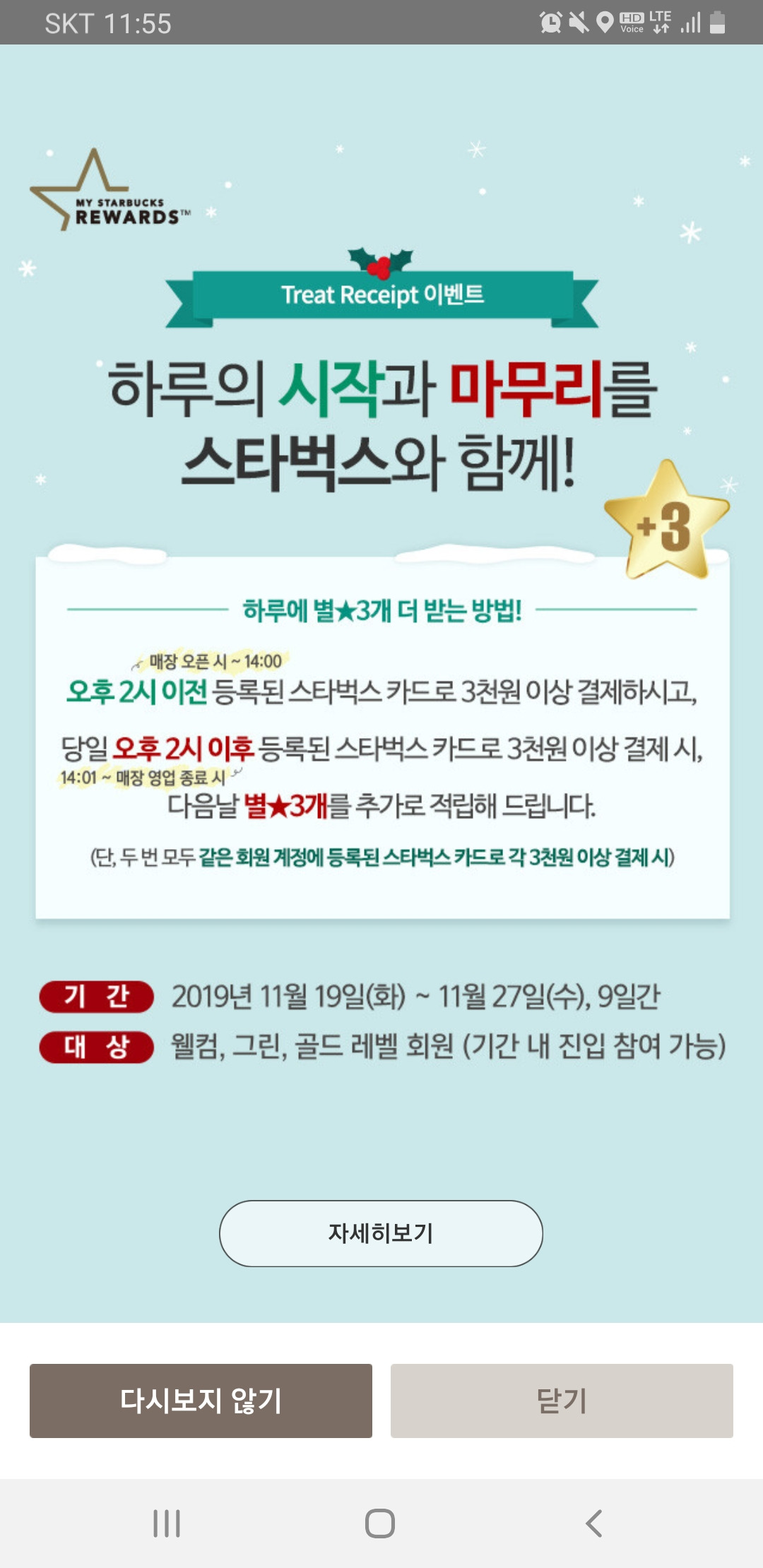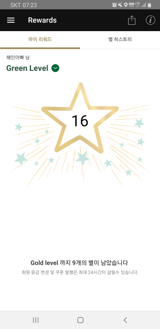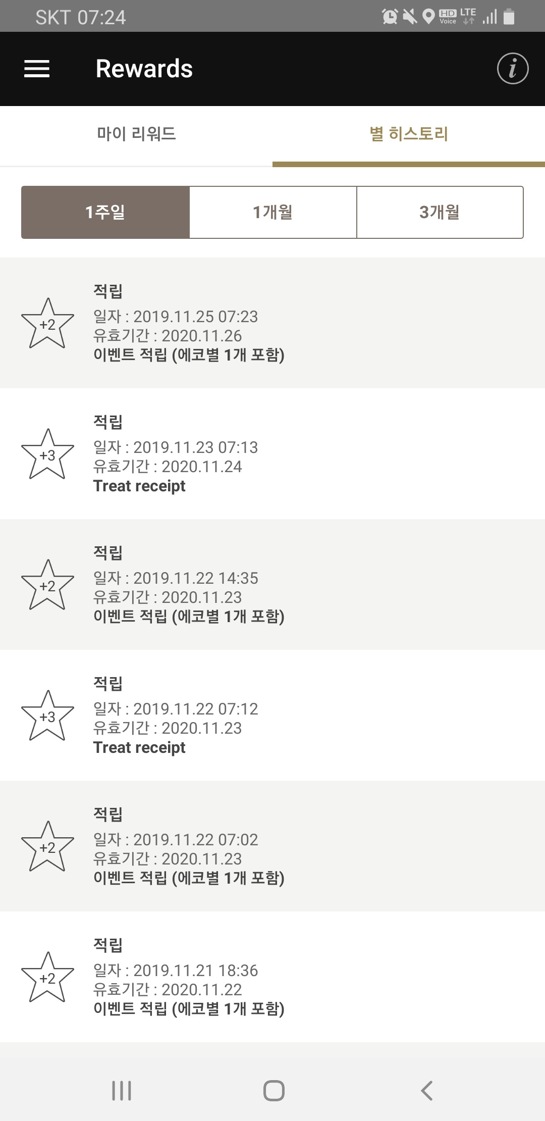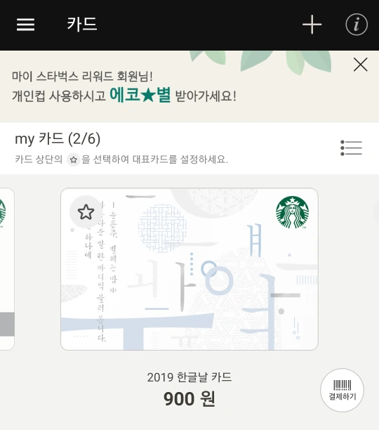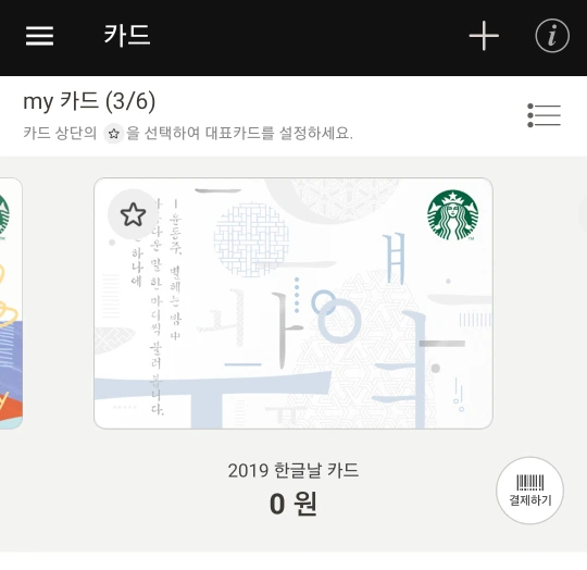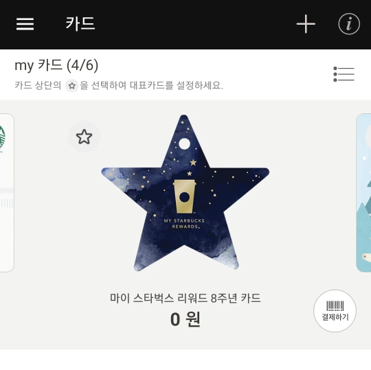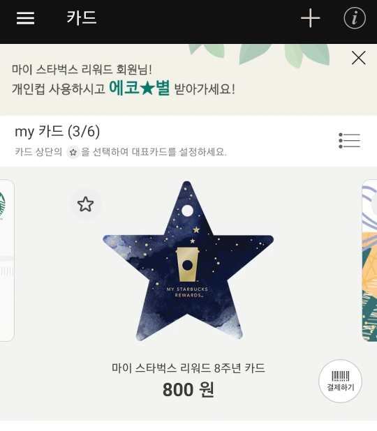 스타벅스 카드로 삼찬 원이상 3,000원 이상이다.몇 번 안 남았다. 별이 필요한 사람들에게는 나름 꿀 정보이다.