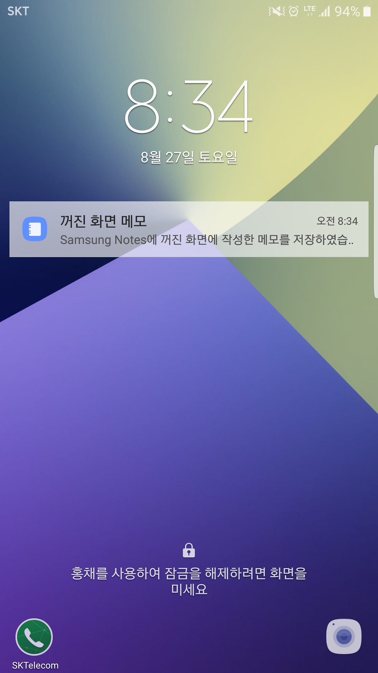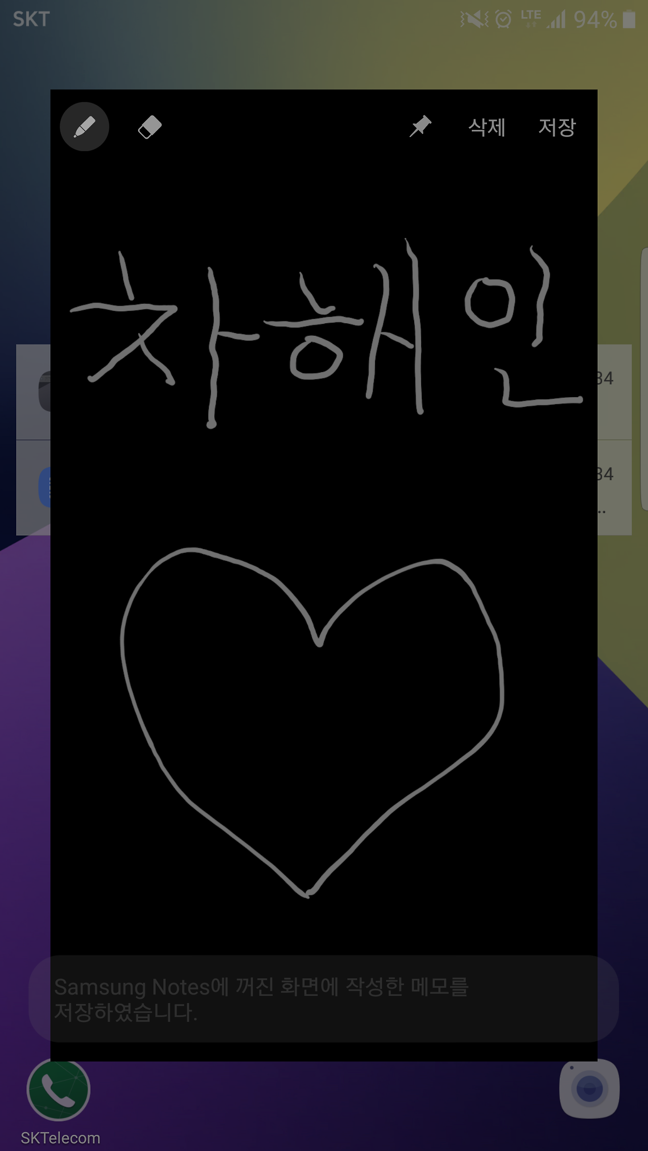 꺼진 화면에서 S펜을 꺼내면 메모가 가능하다. 개인적으로 가장 선호할 기능이다.