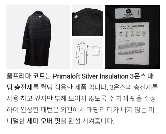 [Woomark X Primaloft®] 울마크컴퍼니에서 인증 받은 프리미엄 메리노 울과 미 육군 방한 패딩 충전재 프리마로프트의 역대급 조합, 이제껏 없었던 코트를 선보입니다.