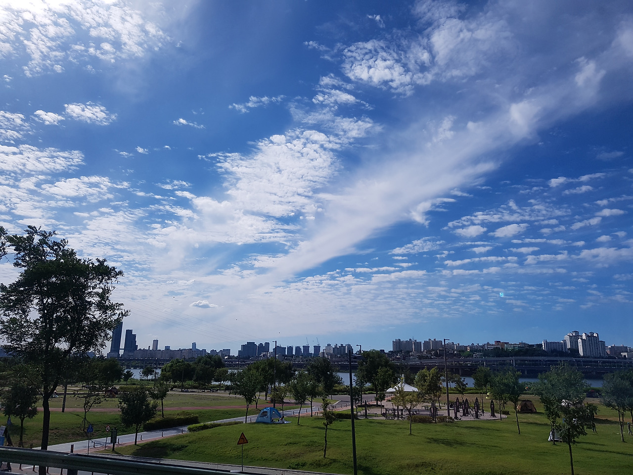 일년에 몇번이나 이런 하늘을 대하게 되는지, 택시를 타며 좀더 환경을 생각해야 한다는 이야기를 나누었다.