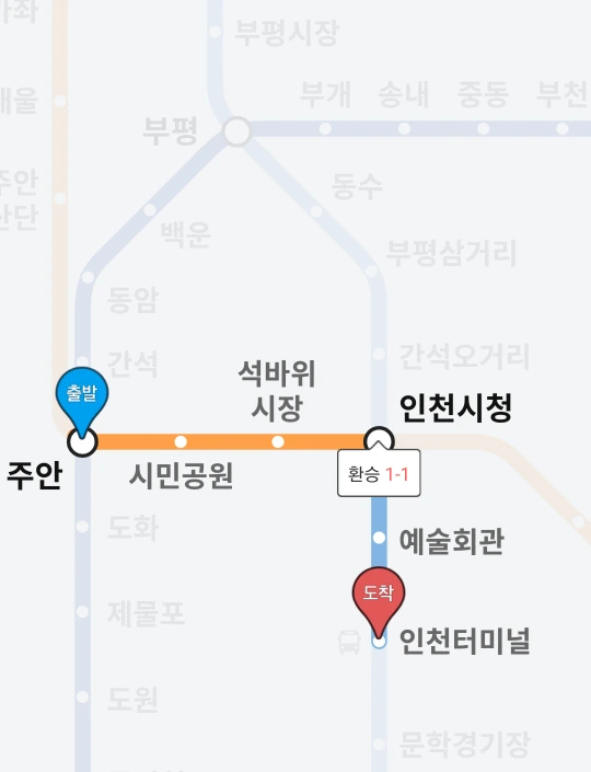서울-주안역-인하대 후문-주안역-인천터미널역-롯데백화점 인천터미널점