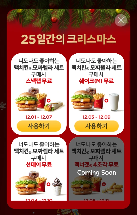 맥도날드 25일간의 크리스마스 맥도날드행사,크리스마스,쿠폰,해피밀,호소문 | 막내와 해피밀 햄버거도 먹고 장난감도 받고 바로 해피밀이다. 몇 년 사이에 미아역 근처에 맥도날드, KFC, 버거킹까지 선택의 폭이 엄청나다. 하지만 막내의 선택은 장난감 햄버거였다. 그렇게 해피밀 세트 장난감은 3번이다. 나는 빅맥세트, 간만에 햄버거는 맛나다. 크리스마스 행사가 진행 중이라고 한다. 25일간의 크리스마스 맥도날드에서 12월 크리스마스