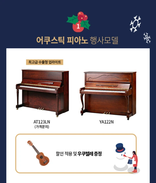2019년 연말 결산 블프로 온갖 이벤트가 가득하다.피아노, 건반피아노, 어쿠스틱피아노도 예외는 아니다.고가의 악기는 이럴 때 접하는 것이다.영창피아노의 장점은 유명 백화점에 입점되어 있다는 것이다.