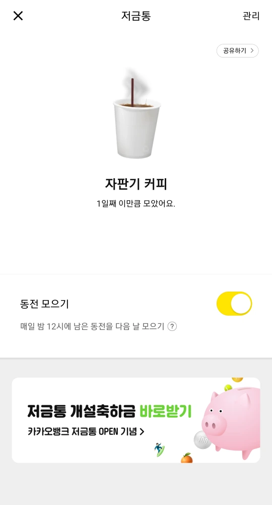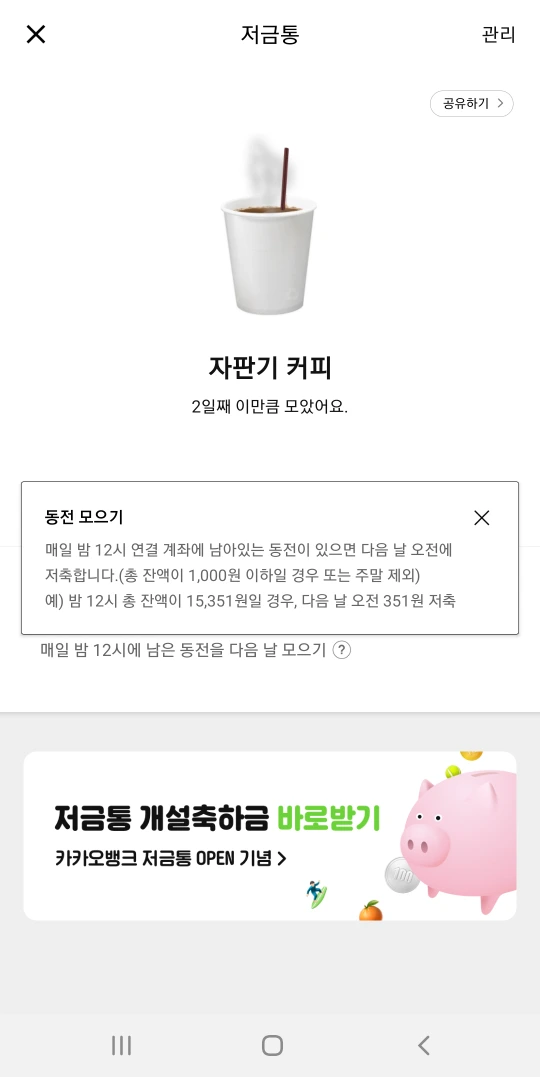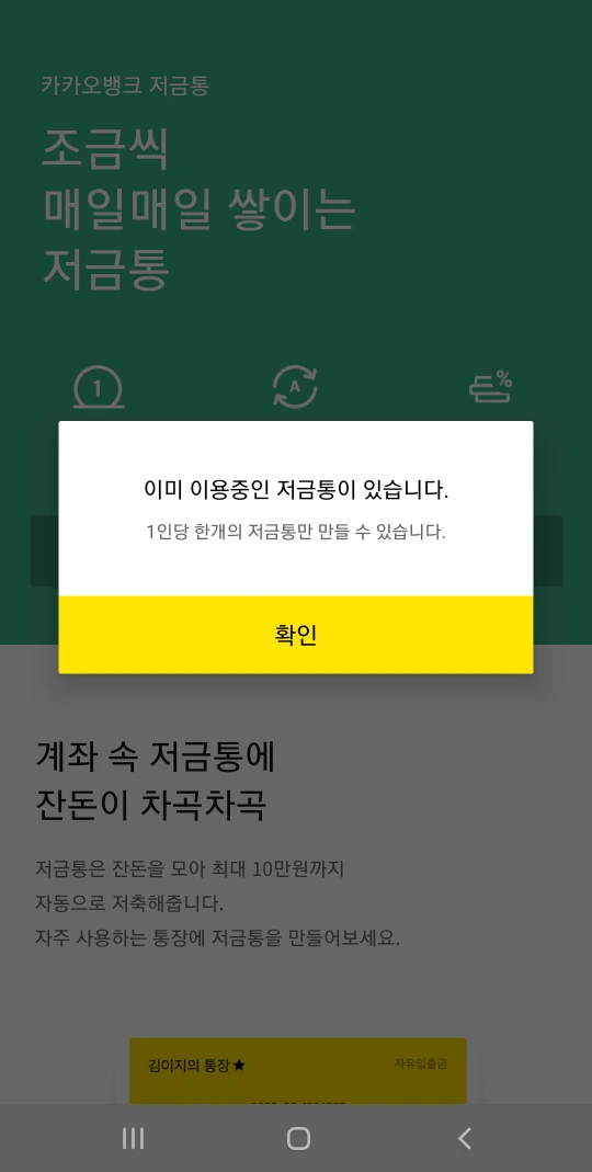 카카오 뱅크 차곡차곡 저금통