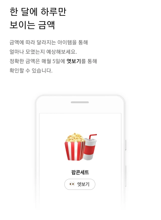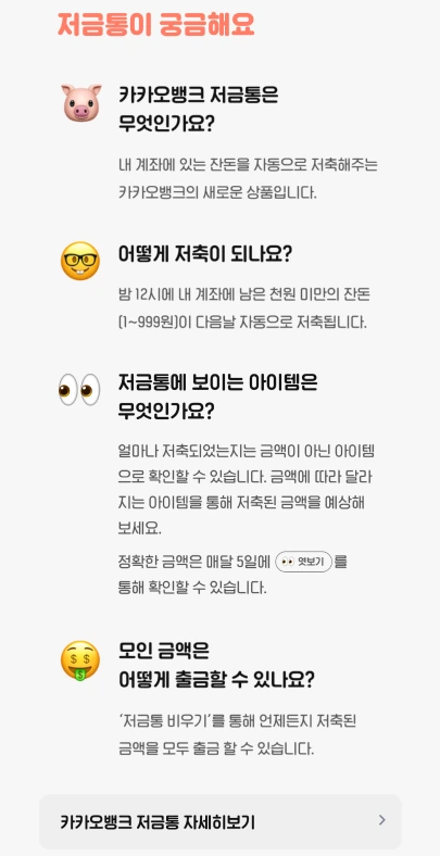 천 원 미만의 잔액으로 매일모아 저금통으로 옮겨서 10만 원을 만드는 것 같고 아이콘으로 보여주고 매달 5일에 잔액을 살짝 보여준다는 것이다.