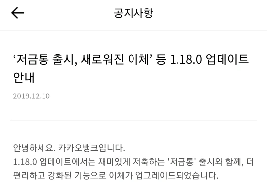 카뱅,차곡차곡,저금통,이체,업데이트,잔돈