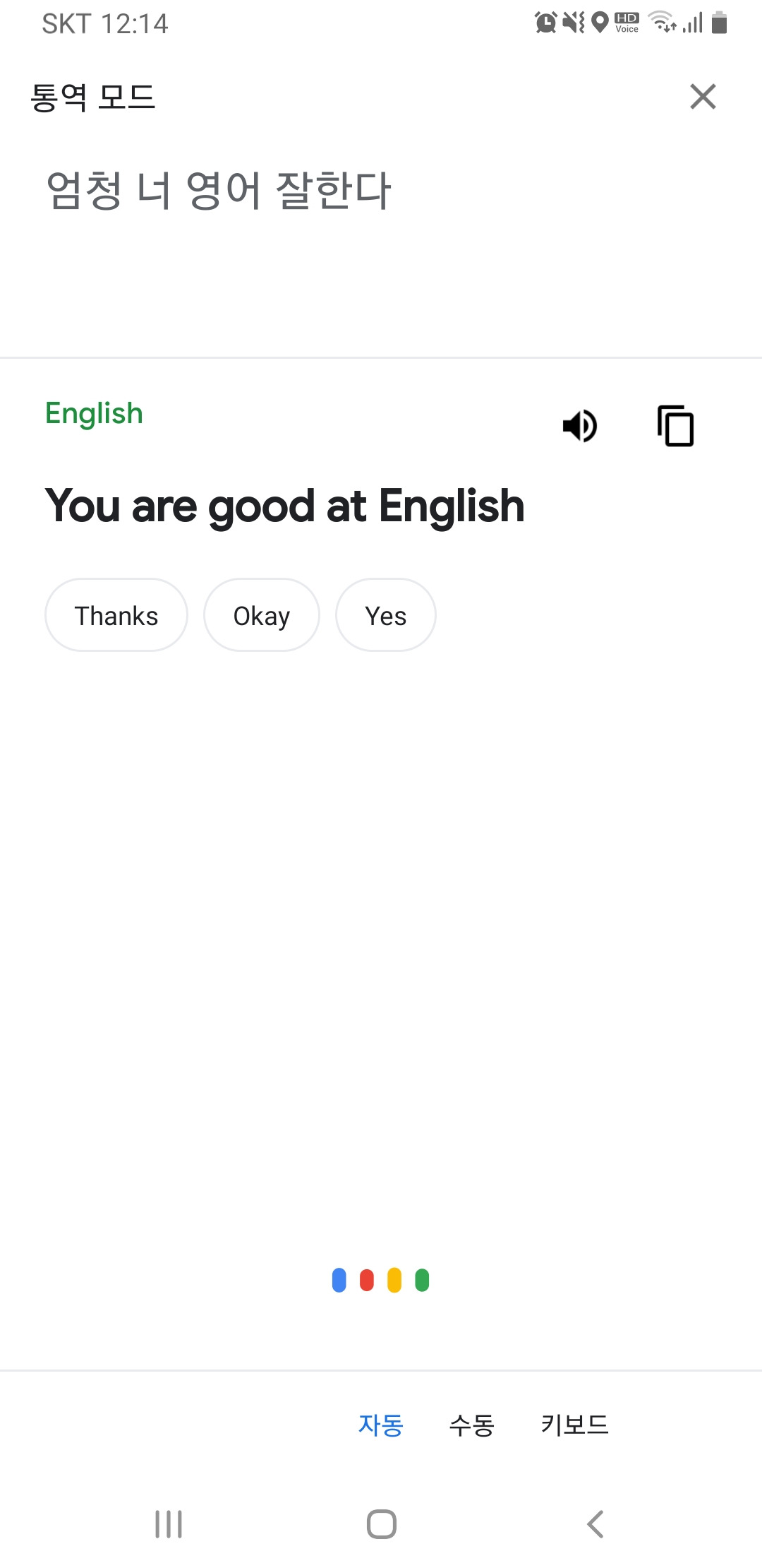 과연 통역사가 몇 년 후에 많이 남아 있을는지기존의 키보드 카피엔 페이스트가 아니다.바로 바로다.기술이 너무 앞서면 더 이상 기술로 여기지 않고 그냥 서비스라고 한다. 기술은 의미가 없다는 것이다.일단 오케이 구글에서 통역 모드로 한번 써보면 된다.