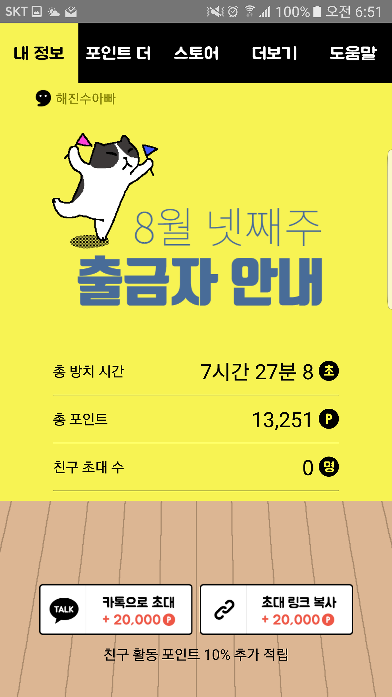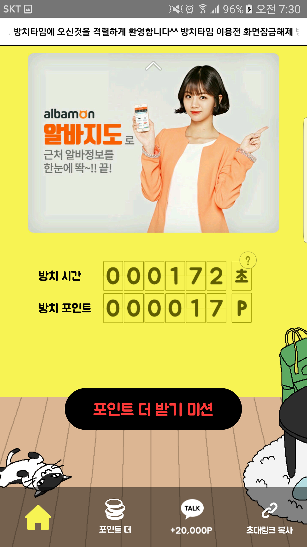 그럼 이 앱의 비즈니스 모델은 무엇일까? 적립 포인트 확인을 위한 창으로 이동하면 광고나 이벤트를 접할 수 있다. 그리 큰 자극도 아닌 듯 싶다. 참아줄 만 하다.