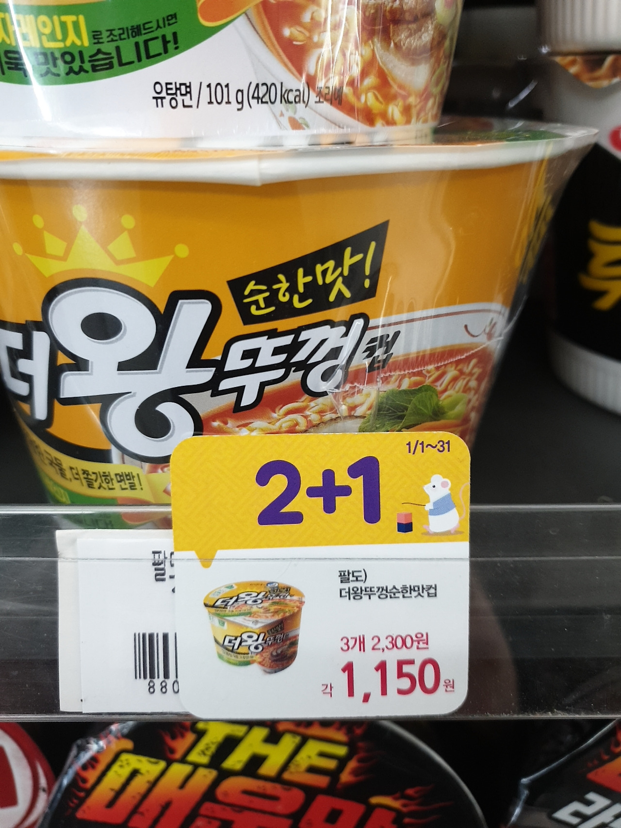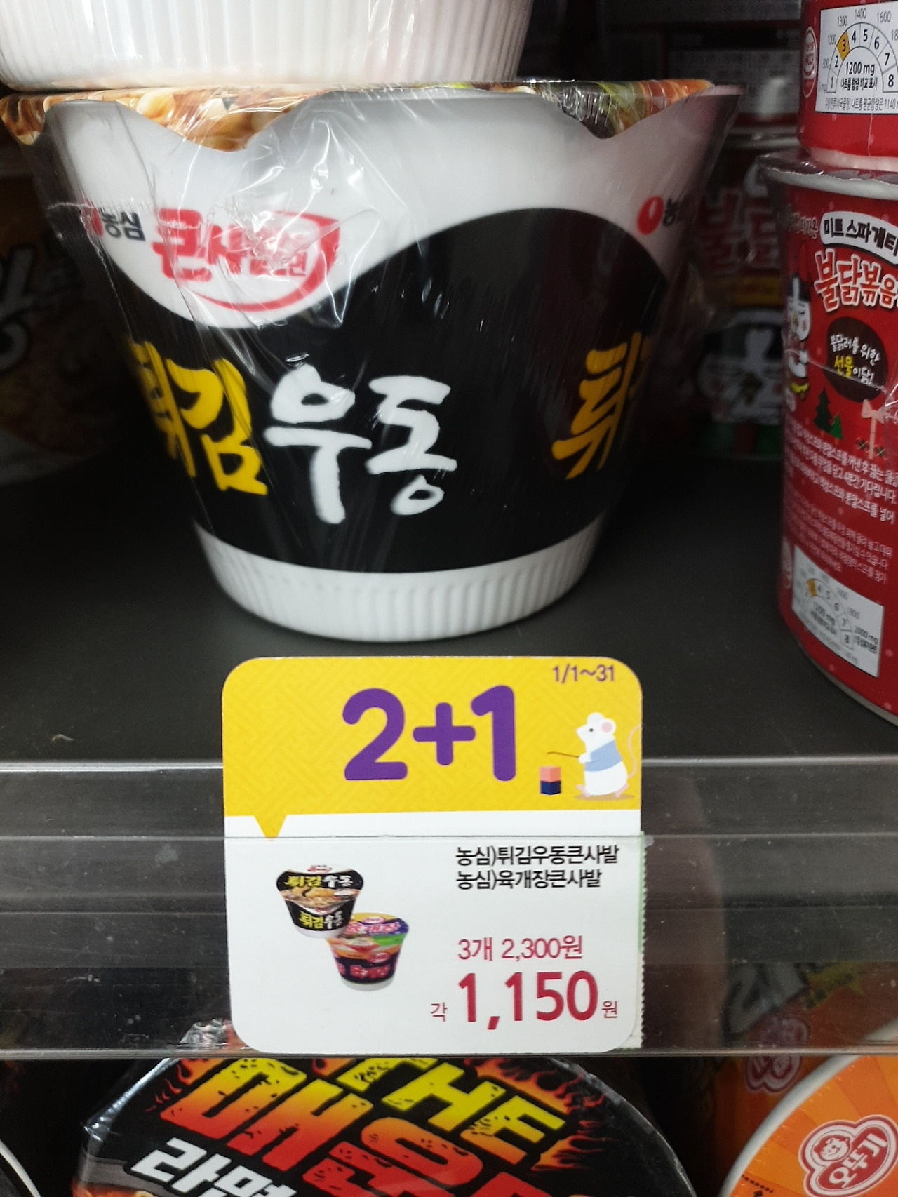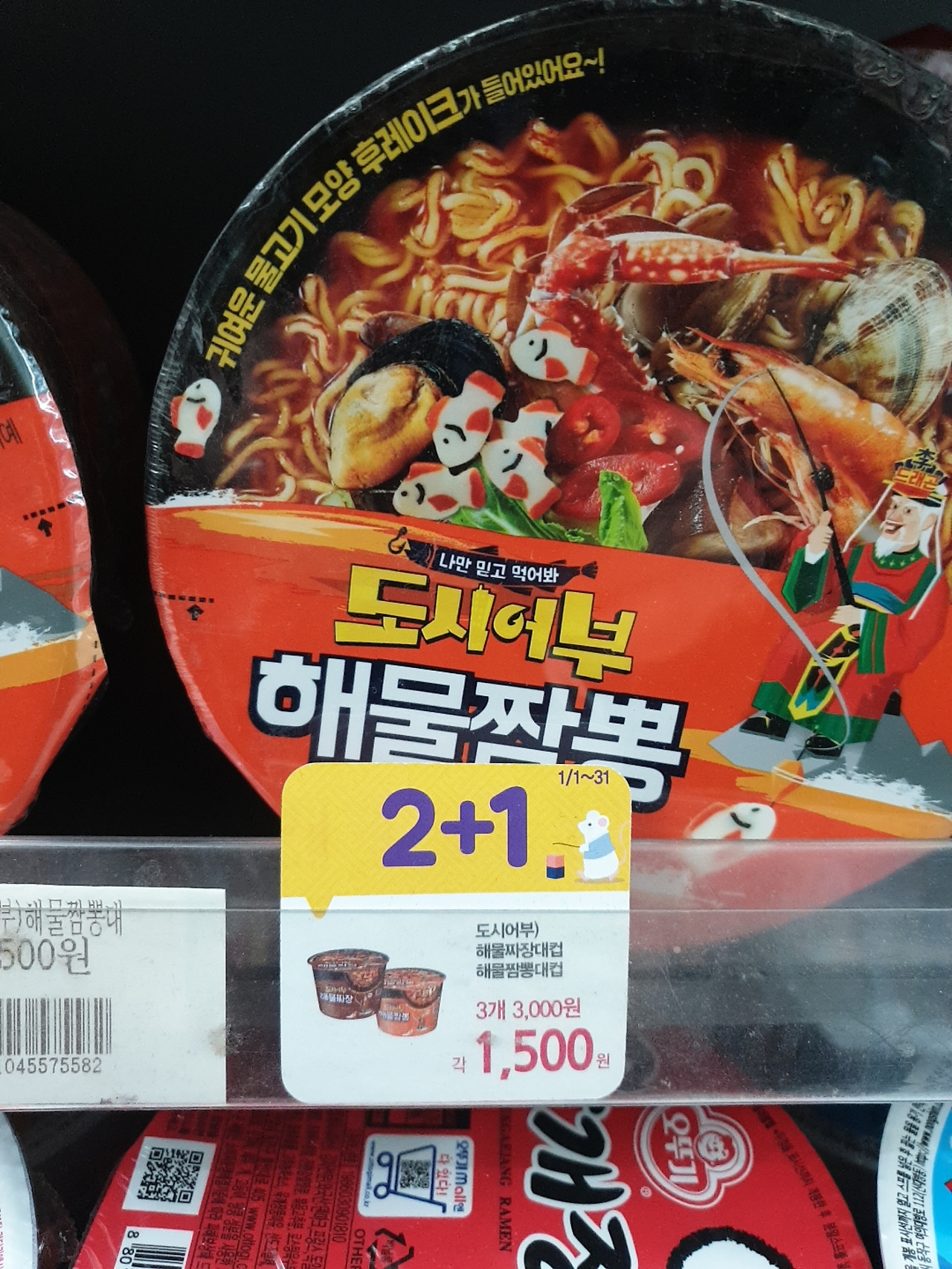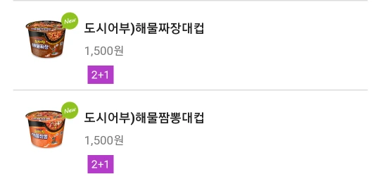 CU편의점.컵라면.2+1,3개가필요할때