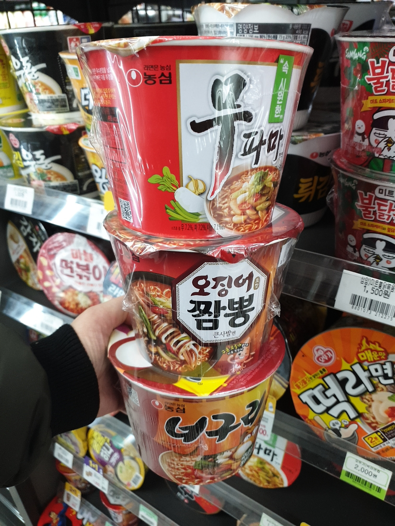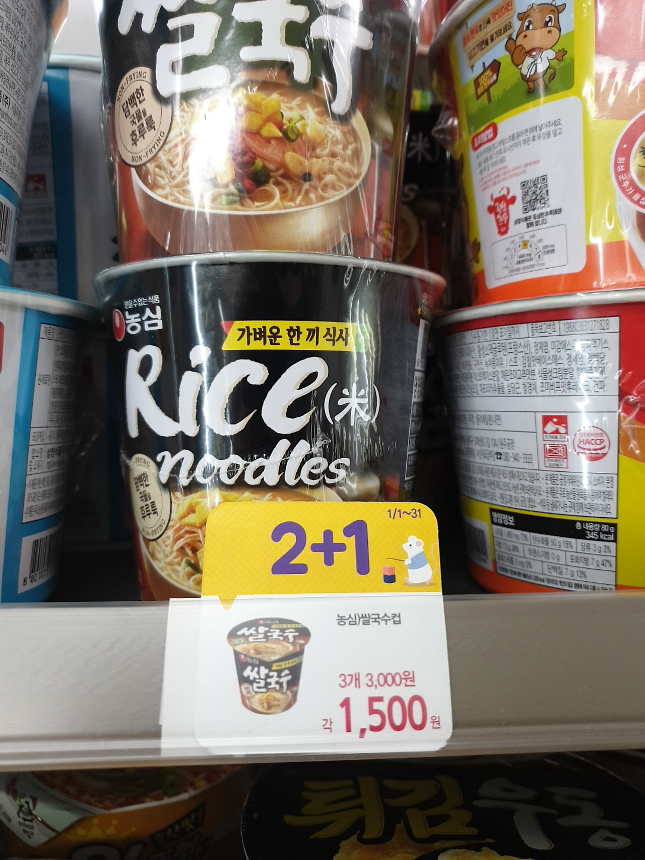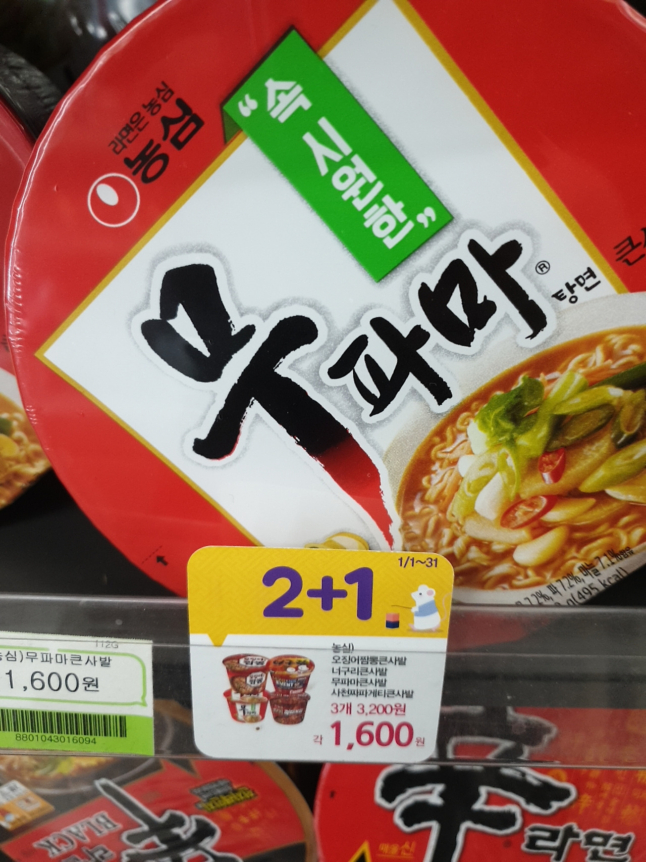 CU편의점.컵라면.2+1,3개가필요할때