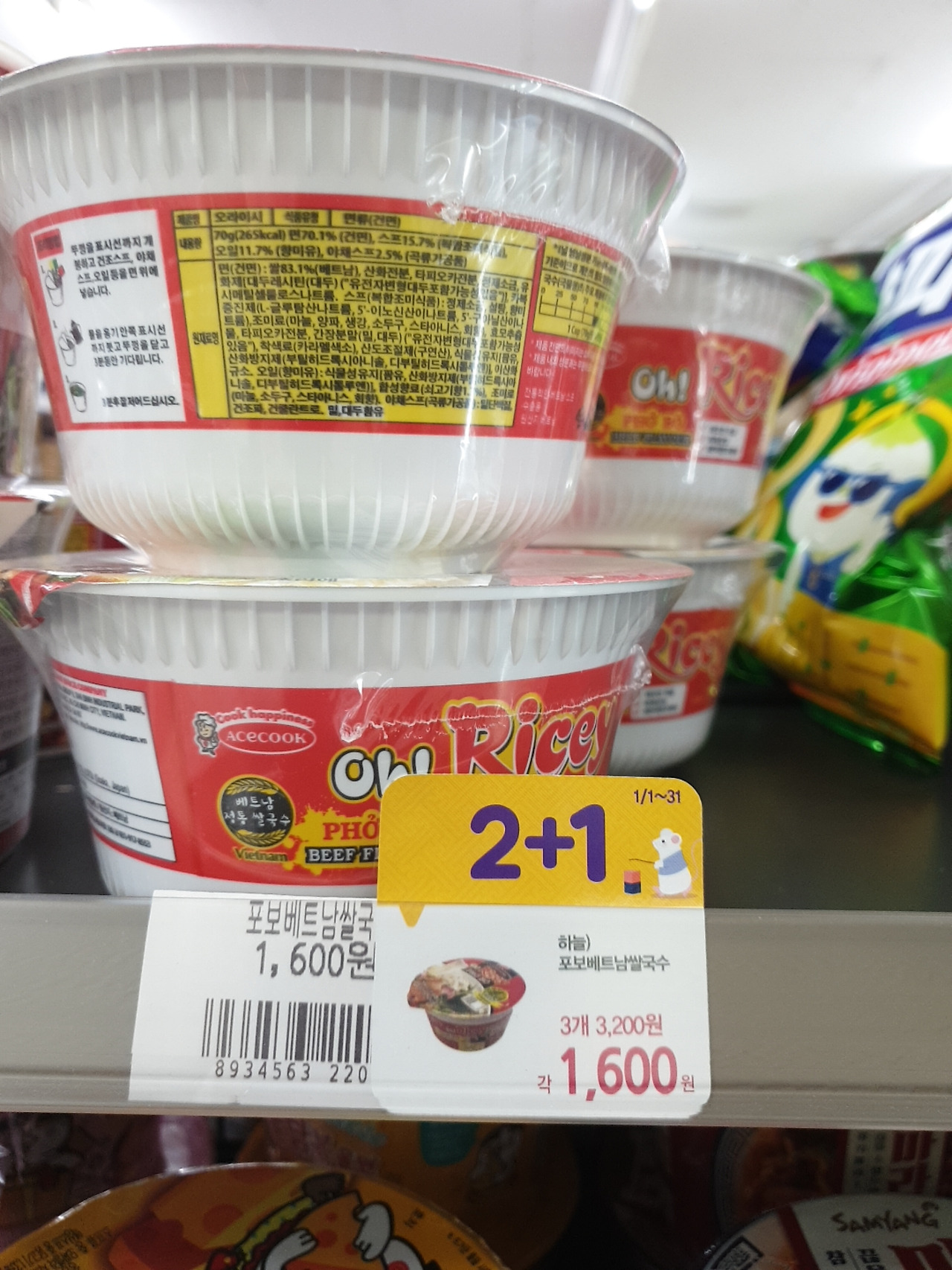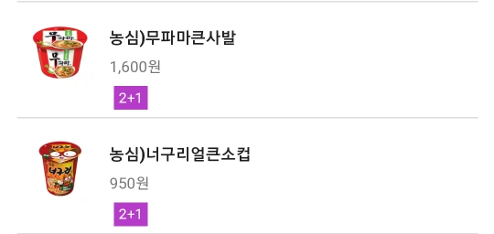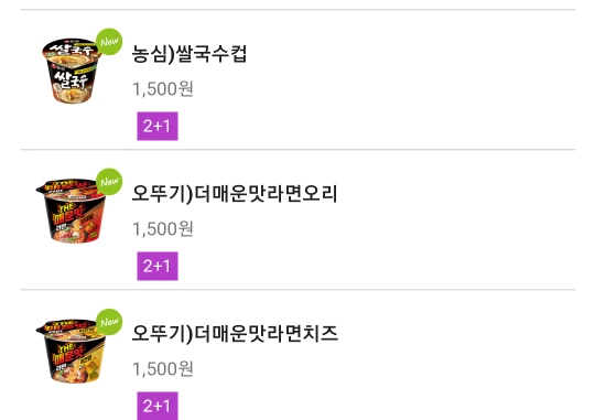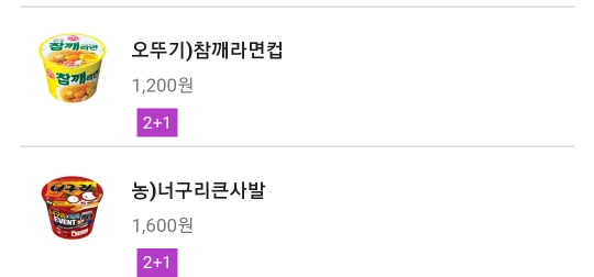 매달 2+1 컵라면 이벤트
