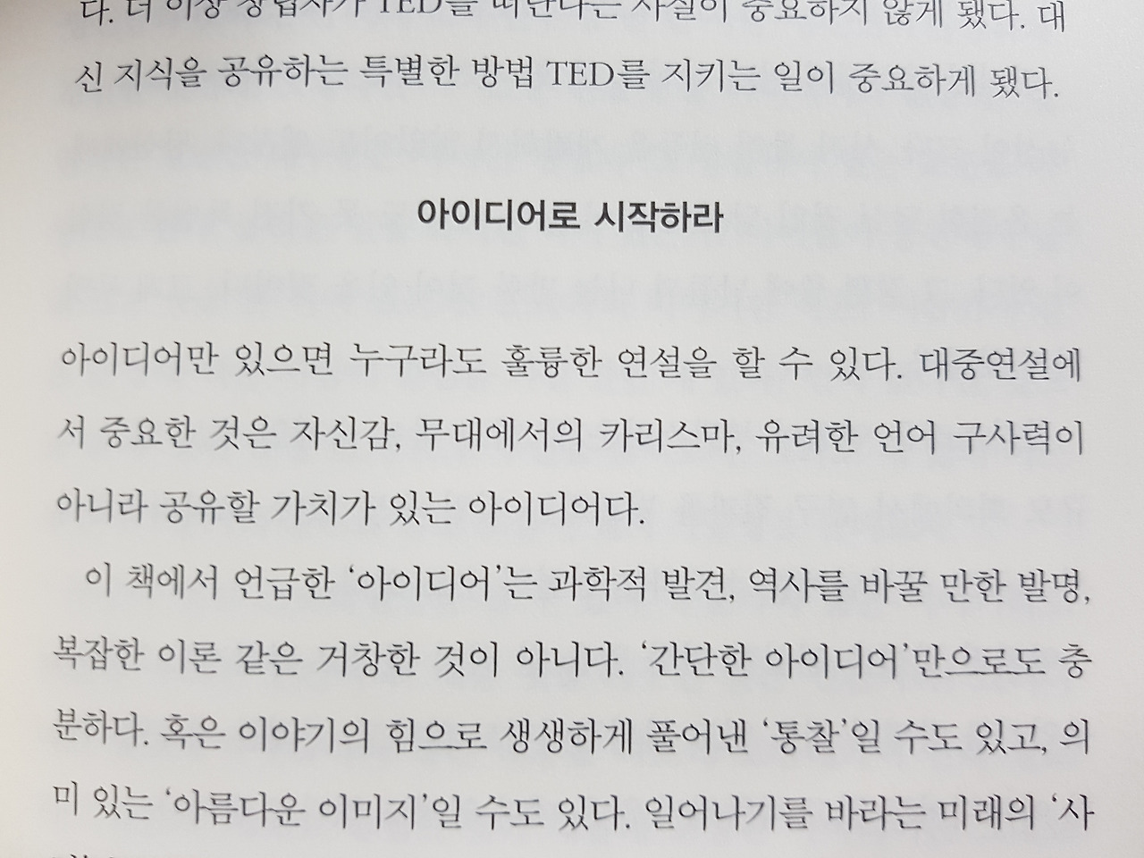 그런데 실제로 몇장 읽어보니 말하기, 연설에 관한 글이였다. 그러면서도 다른 것이 있다면, TED안에서의 연설자들의 다양한 이야기가 언급된다.