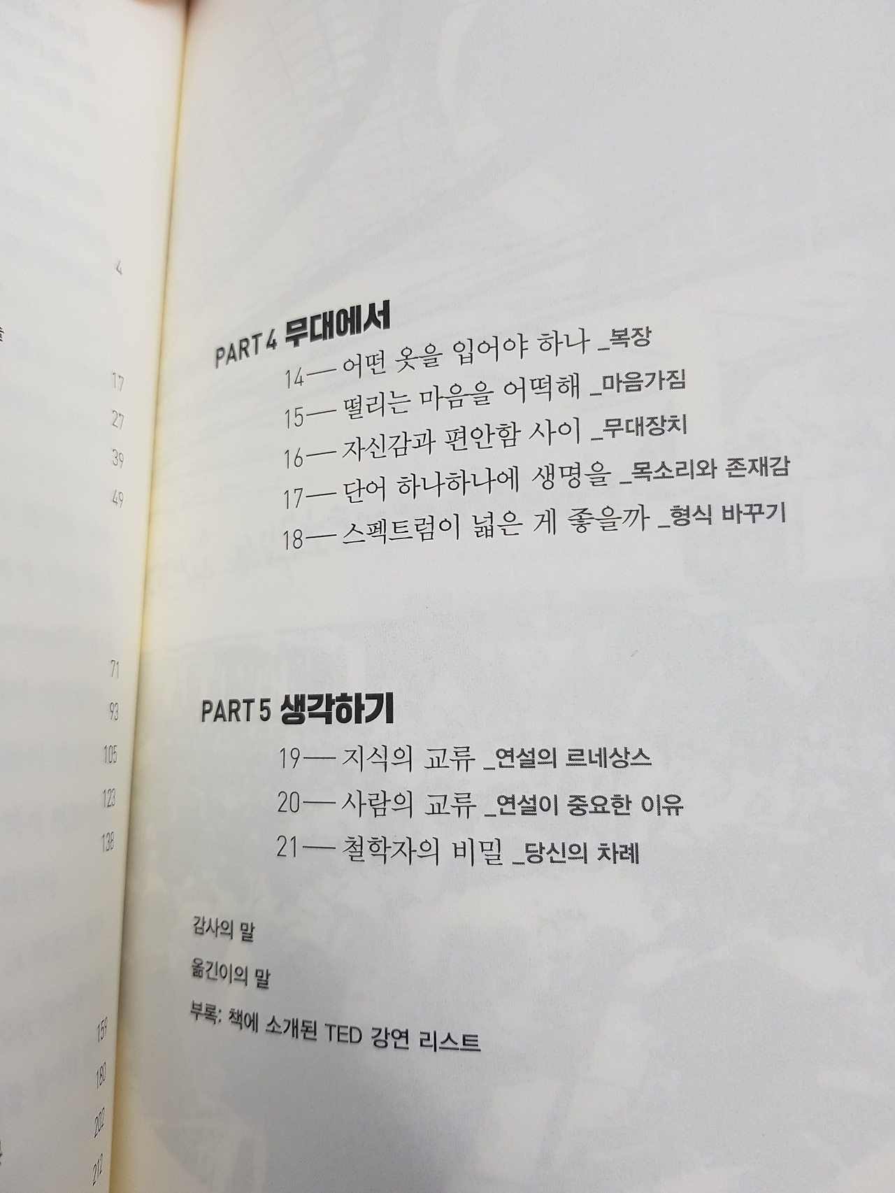 책의 순서다. 분명 파트2까지는 나의 시선을 끌 것이다.