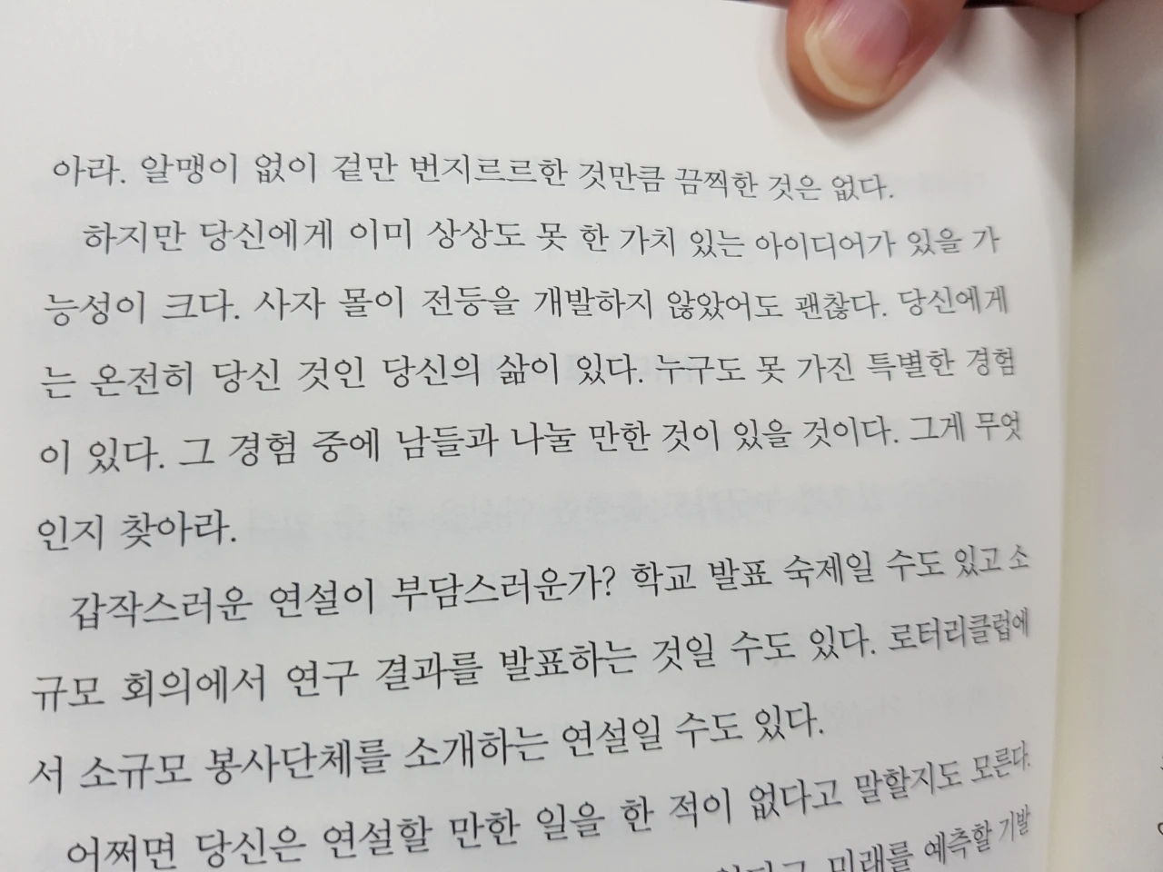 연설과 아이디어, 자신의 분야의 이야기는 옆 사람이 공감하고 들어줄 만한 경험에서 나온 소소한 아이디어다.