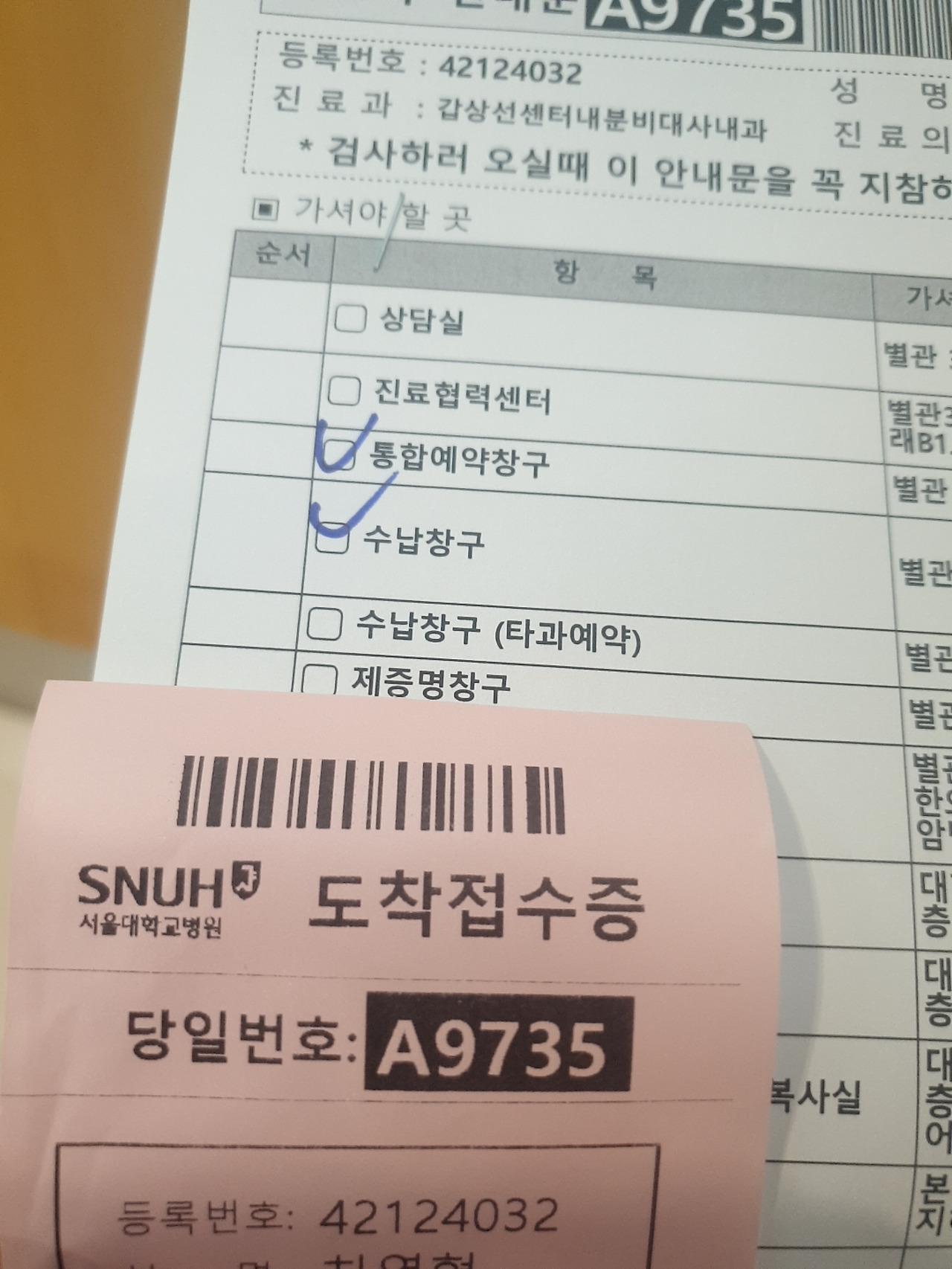갑상선검사,서울대병원,체혈,초음파검사,씬지록신 | 갑상선 정기검사 6개월 만이다 먼저 채혈과 초음파 검사, 그리고 일주일 후 진료라 불가피하게 반차나 휴가다. 다행히도 진료날이 여름휴가다. > 서울대 암병원 > 채혈 예전에는 이름에 중간에 하나 정도 동그라미 표시되었는데 당일 번호로 바꿨다. > 초음파검사 > ?"일주일 후 진료 씬지록신 진료 결과현재 약 흰색 한알 핑크색 반알이었는데, 흰색 한