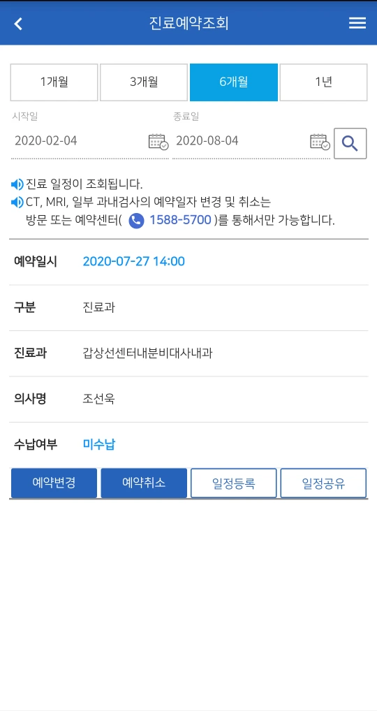 6개월에 한 번 검사이다.피검사 한 번 검사하면 담 번 6개월 후에는 초음파까지다. 7월 진료는 그러하다.
