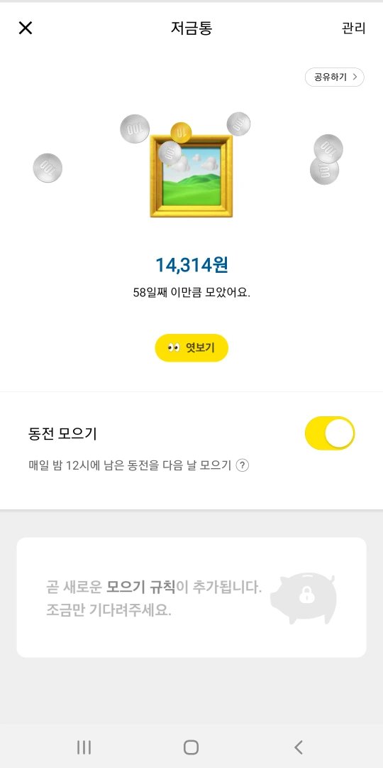 카카오뱅크 저금통 출시 잔돈전쟁 카뱅,차곡차곡,저금통,이체,업데이트,잔돈 | 카카오 뱅크 차곡차곡 저금통 카뱅의 업데이트 이번에는 저금통이다. 그리고 이체와 편리해졌다고 한다. 첫 느낌그런데 이번 저금통에 대한 서비스에는 감이 없다.조금 어렵다.천 원 미만의 잔액으로 매일모아 저금통으로 옮겨서 10만 원을 만드는 것 같고 아이콘으로 보여주고 매달 5일에 잔액을 살짝 보여준다는 것이다.글을 다 쓰고 나니 이것은 잔돈 전쟁이었