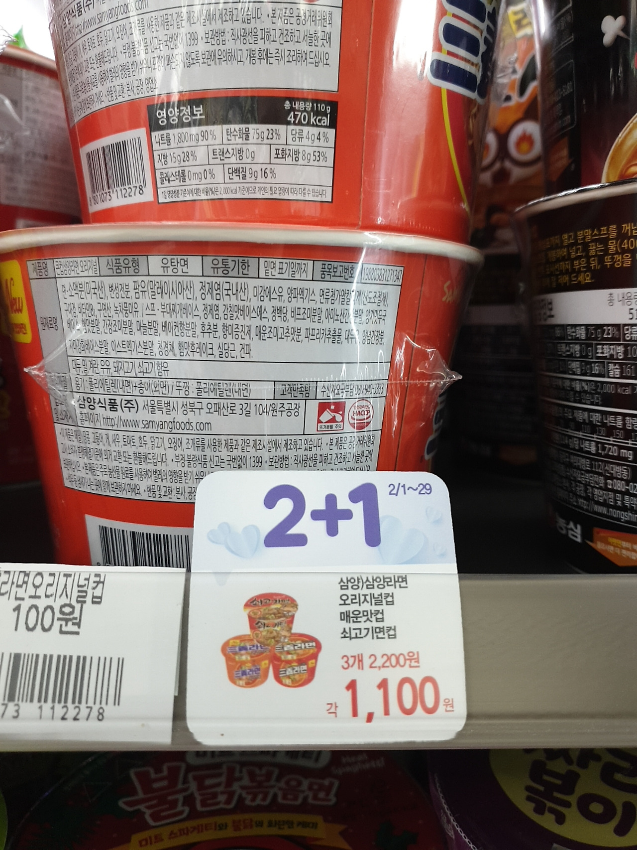 매달 2+1 컵라면 이번 달은 2월