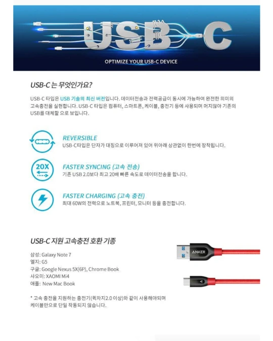 엔커코리아,핸드폰충전케이블,c-Type,5핀
