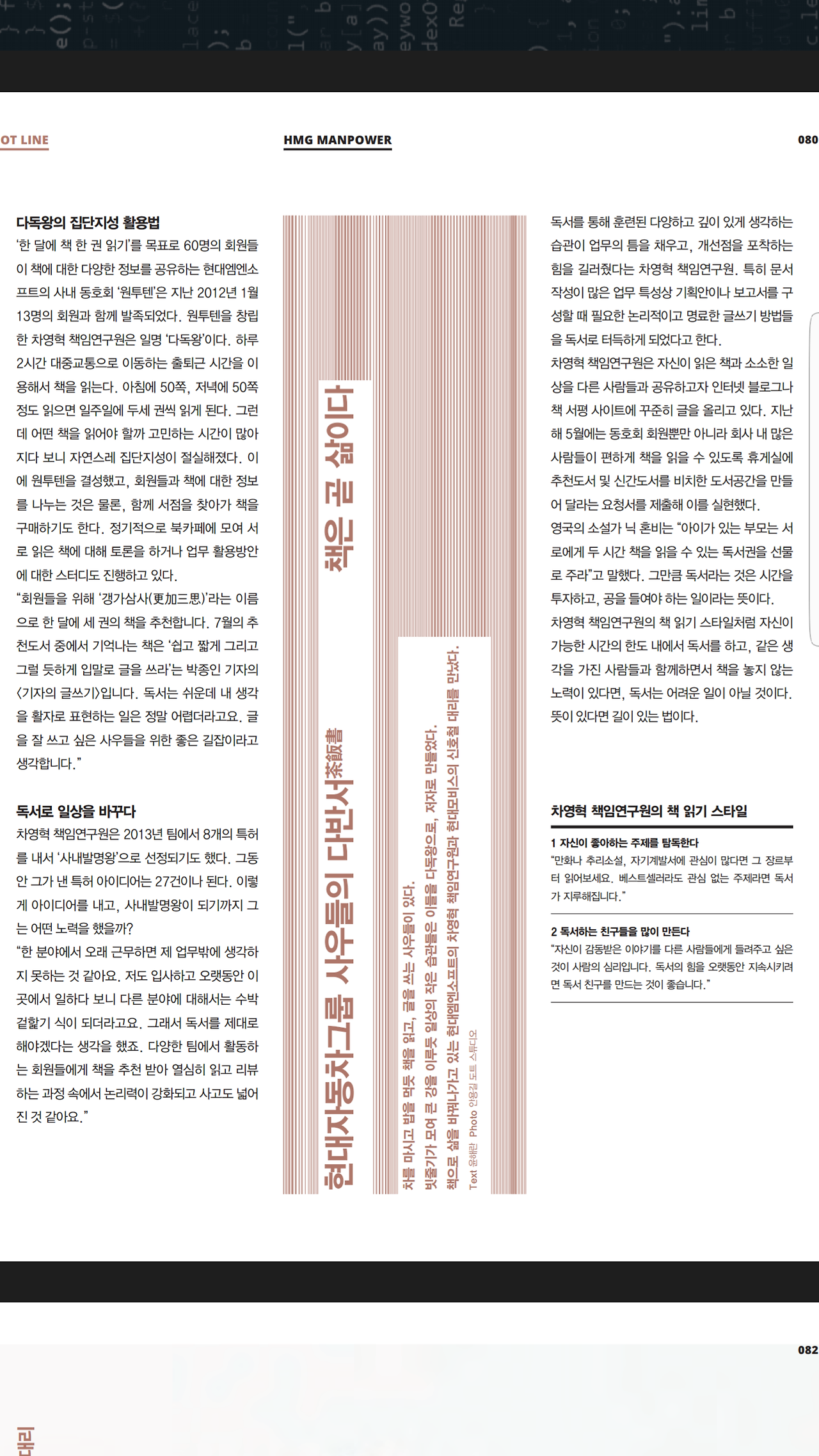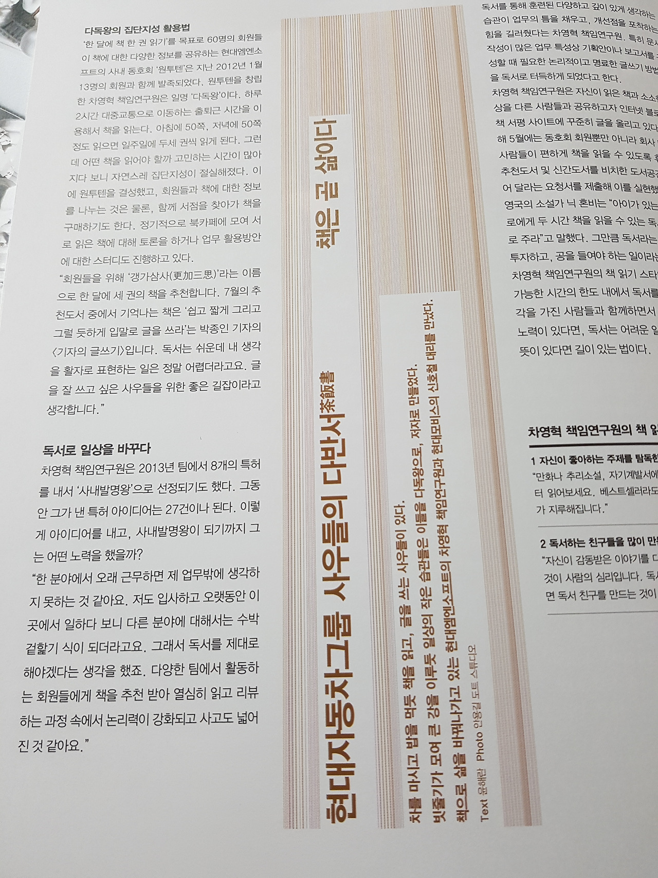 그룹사 잡지, 독서에 대하여 인터뷰 한 9월호 책자를 우선 받아본다.