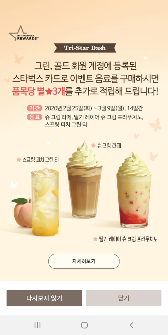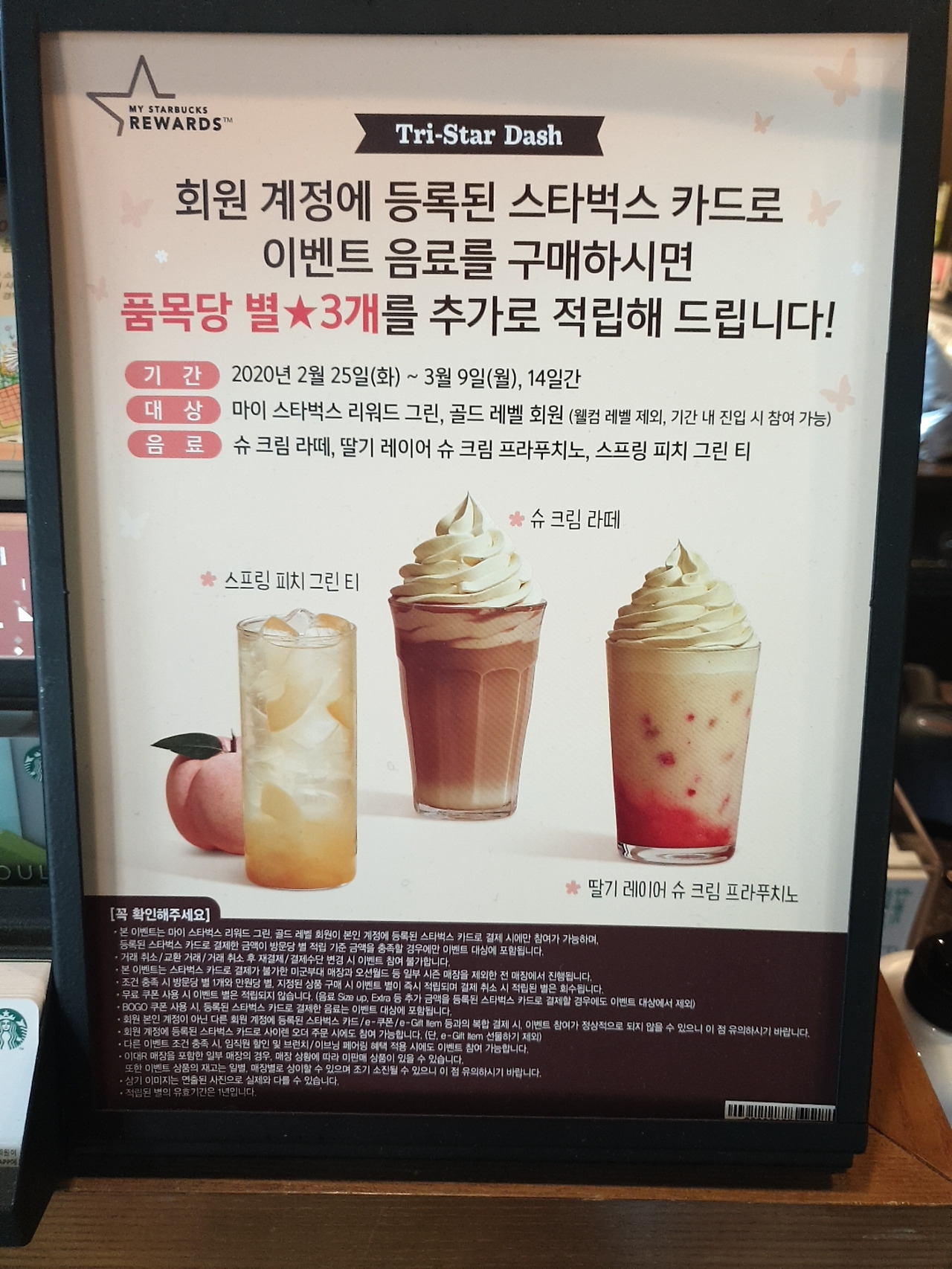 스벅 스벅시즌 음료에 도전, 새로운 맛보다는 별 3개이다.마침 11개 정도 쌓여있어서 무료 음료 쿠폰을 받으려고 도전이다. 이벤트는 나의 삶