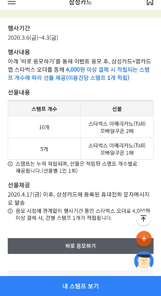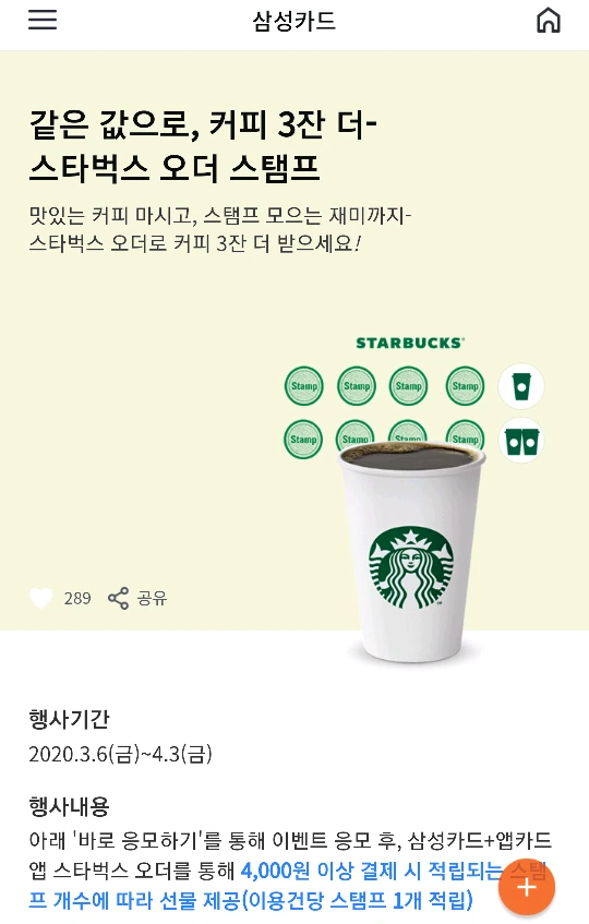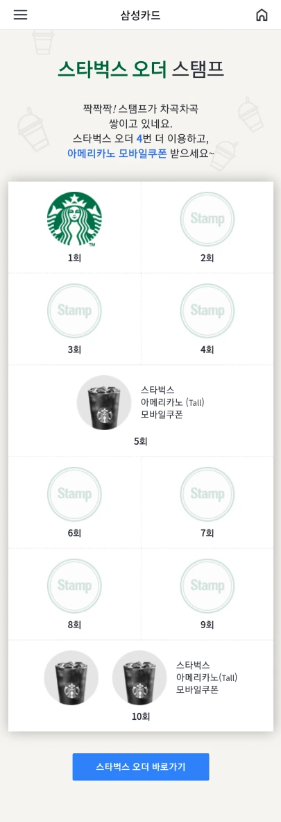 스타벅스오더스탬프,스벅오더,삼성카드이벤트,스탬프