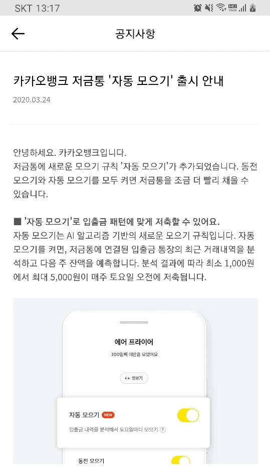 카뱅,저금통,자동모으기,구독경제,구독저금