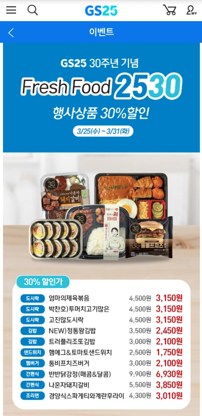 매월 25일~말일 30주년 행사상품 구매 시 30%