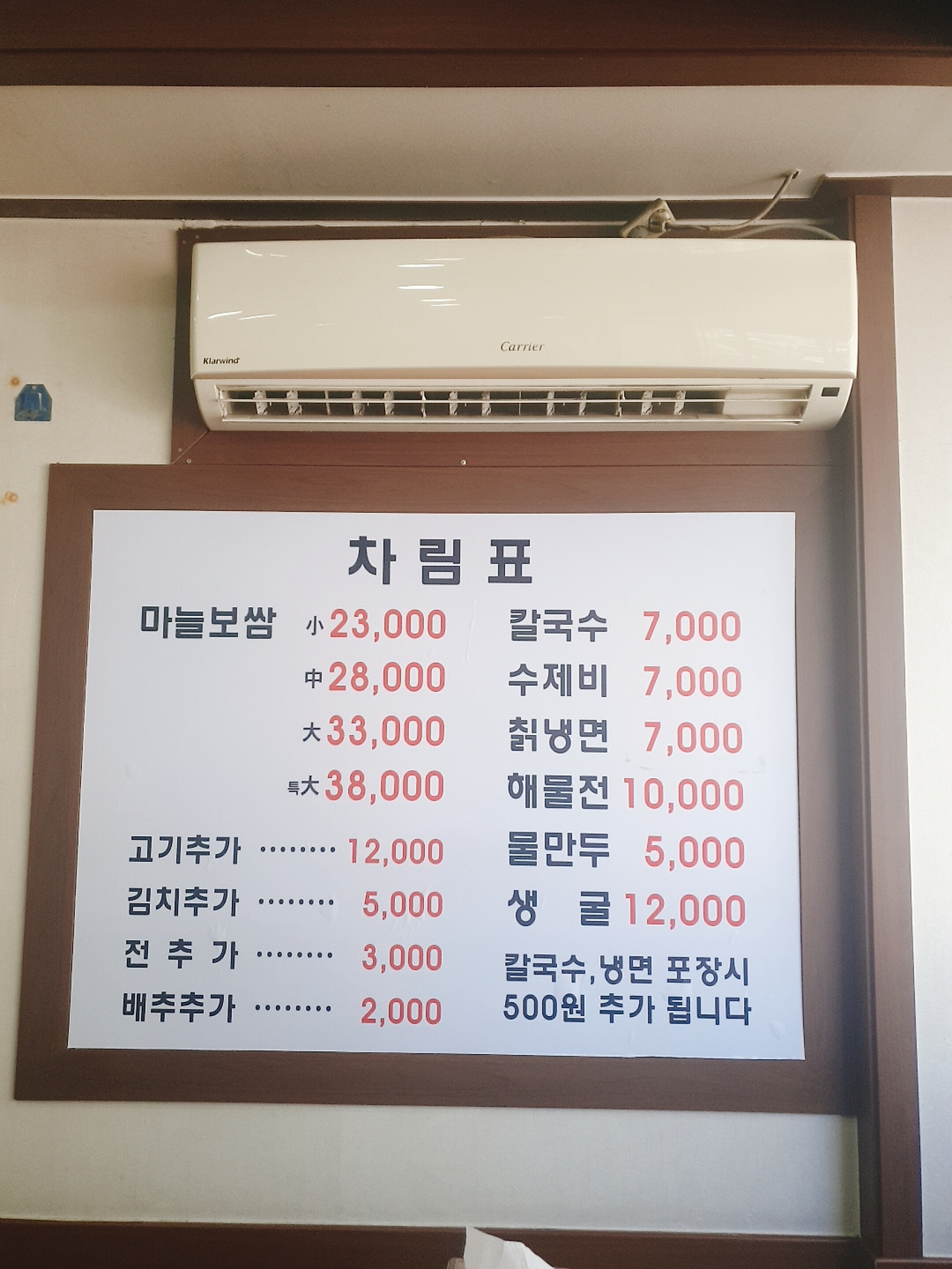 마늘보쌈(중), 칼제비(칼국수+수제비)