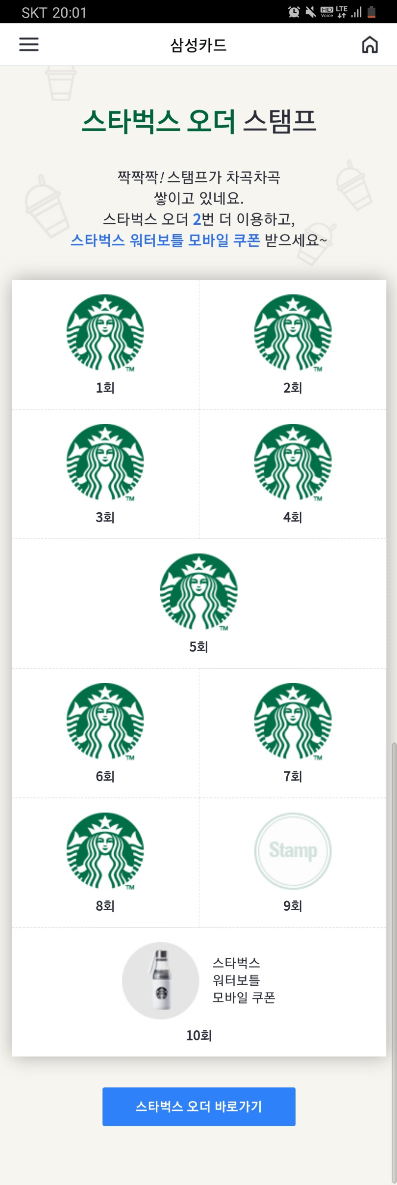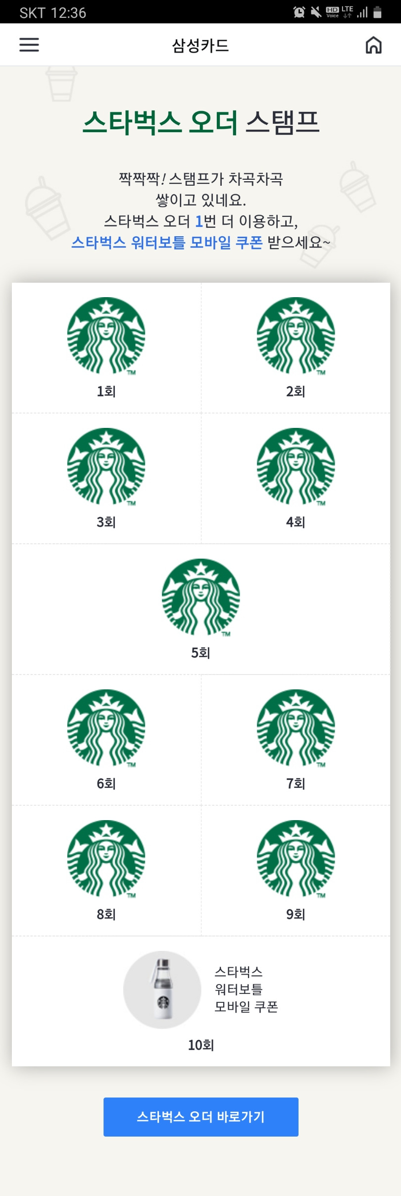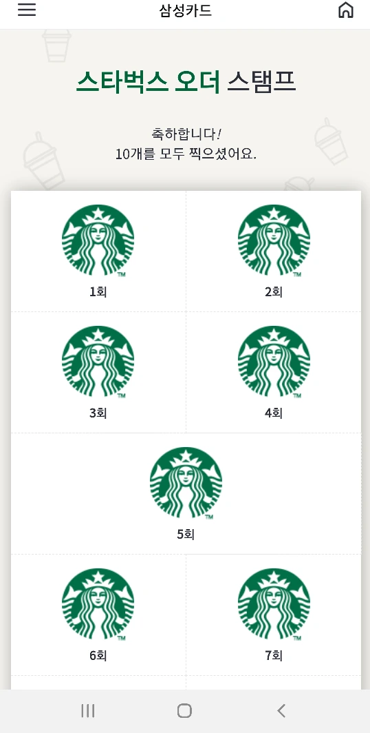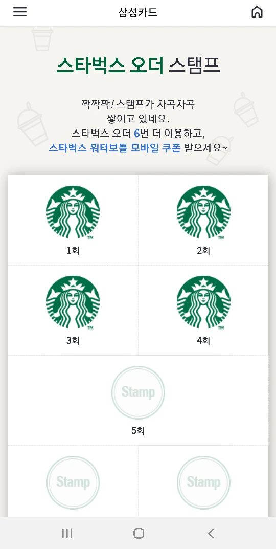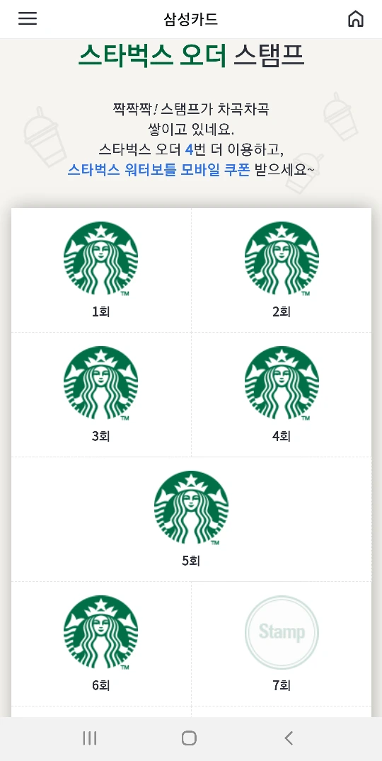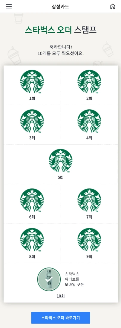 삼성카드 스벅 사이렌 오더 이벤트 달성