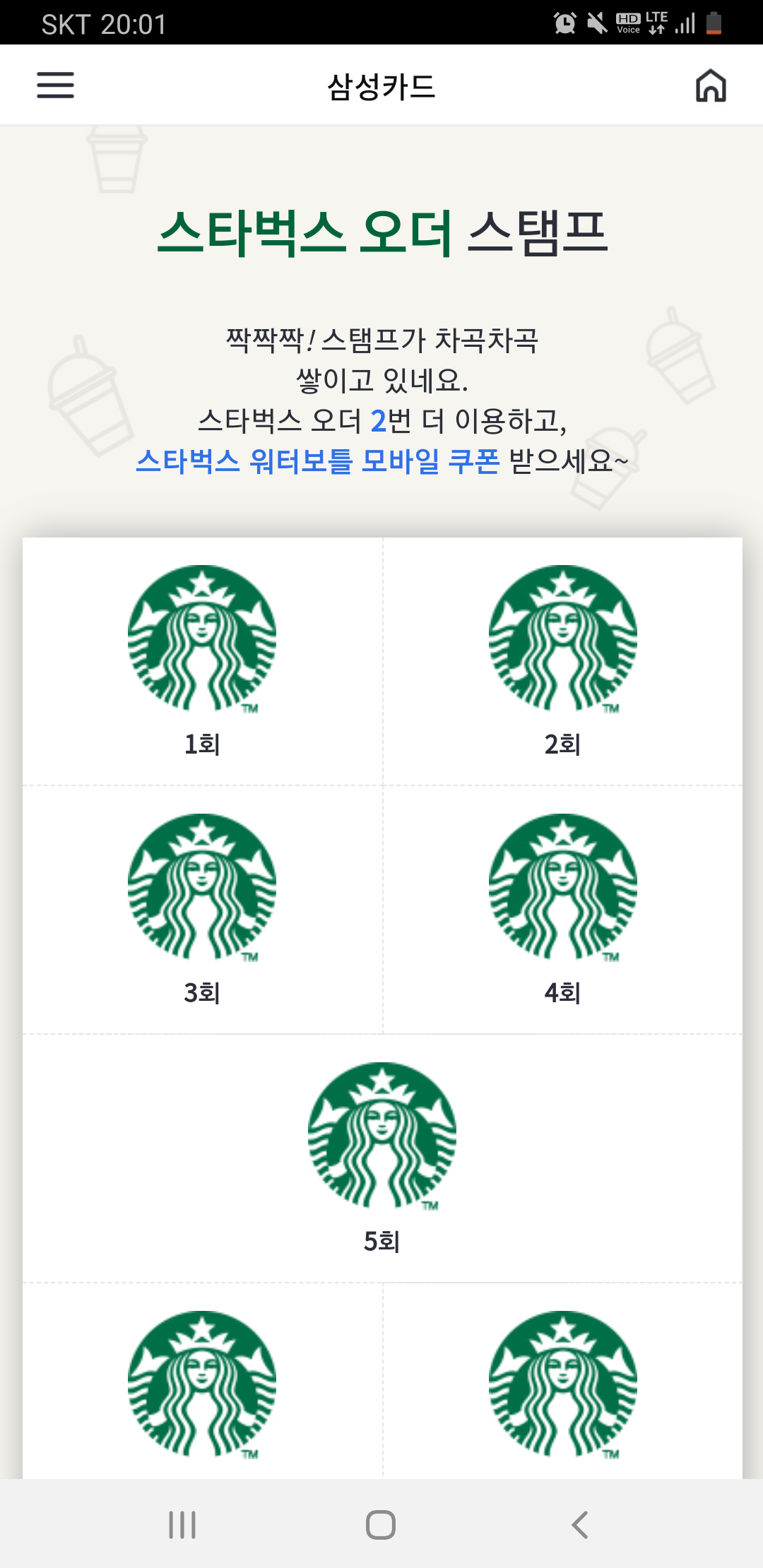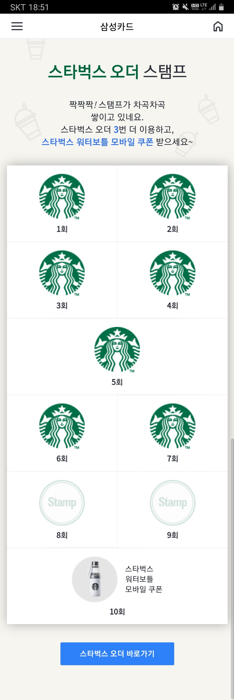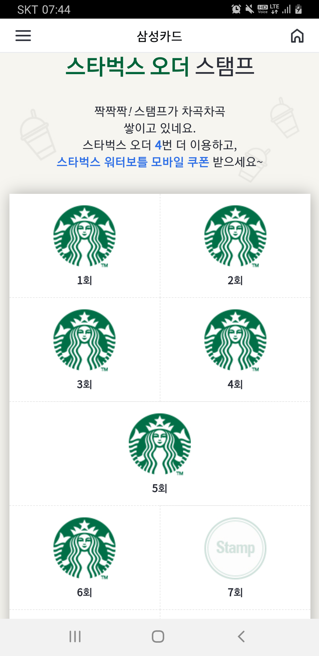 삼성카드 스벅 사이렌 오더 이벤트 달성
