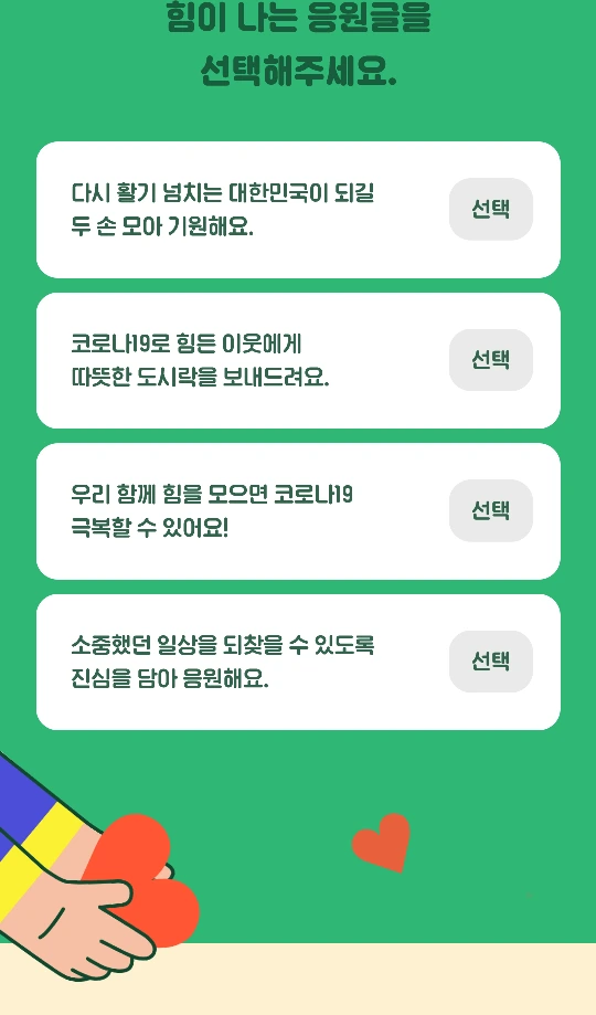 응원글 선택만 하면 됩니다.이런 간략하고 손쉬운 접근들이 정말 돋보임입니다.