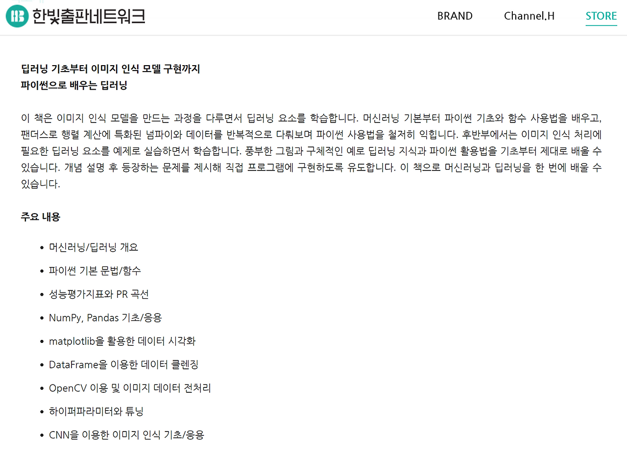 이 책의 장점은 머신러닝/딥러닝 개요와 기본 문법/함수 특히 배열에 대한 정리가 잘 되어 있다. 물론 최종 목표는 이미지 인식 기초와 응용이지만 거기까지 단 번에 갈 수 있는 것이 아니다. 차근차근 단계별로 진행해야 함이다. 그런 면에서 앞 부문 구성과 내용이 잘 정리되어 있음이다.