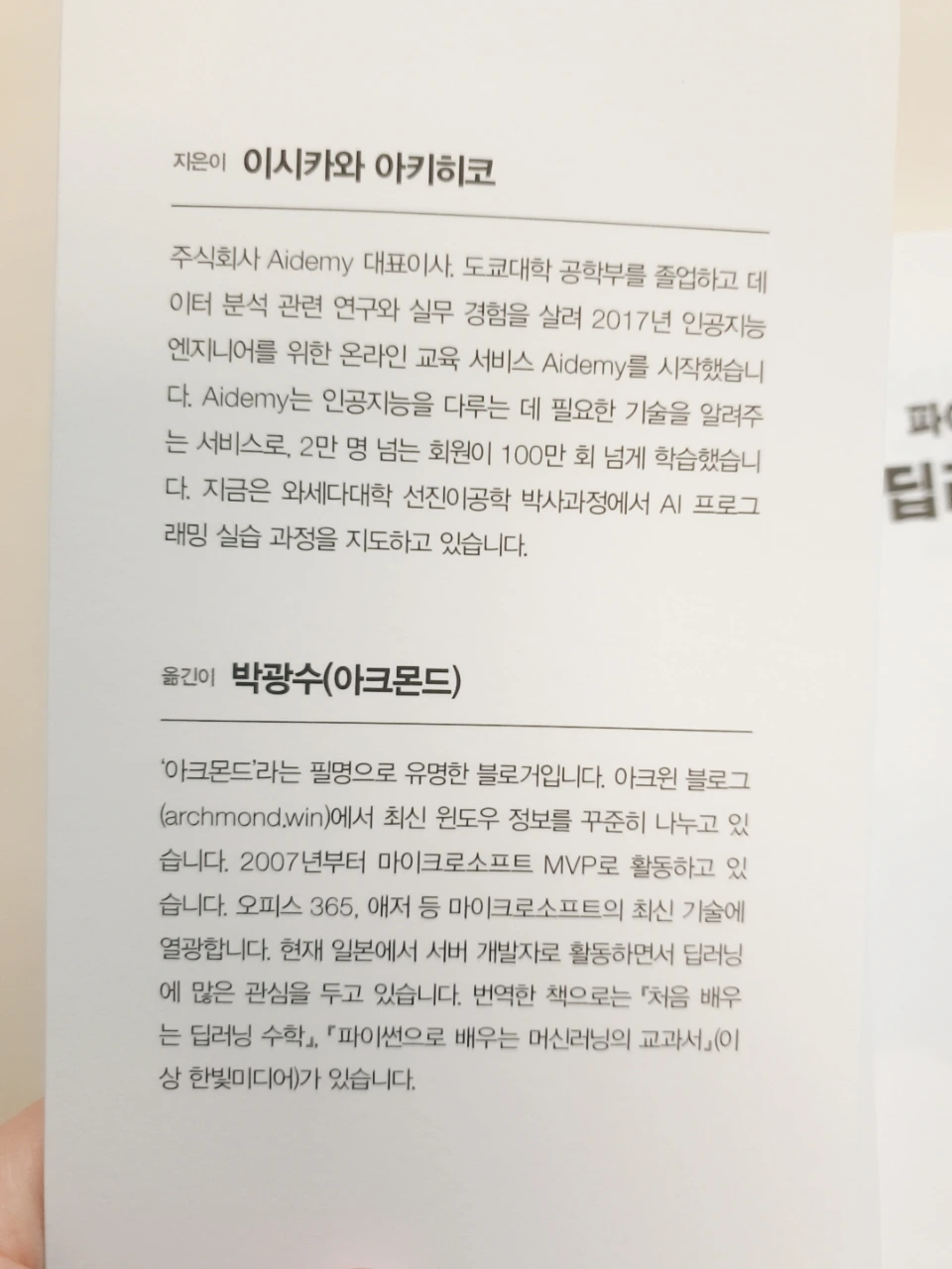 이 책은 이미지 인식 모델을 만드는 과정을 다루면서 딥러닝 요소를 학습합니다. 머신러닝 기본부터 파이썬 기초와 함수 사용법을 배우고, 팬더스로 행렬 계산에 특화된 넘파이와 데이터를 반복적으로 다뤄보며 파이썬 사용법을 철저히 익힙니다. 후반부에서는 이미지 인식 처리에 필요한 딥러닝 요소를 예제로 실습하면서 학습합니다.