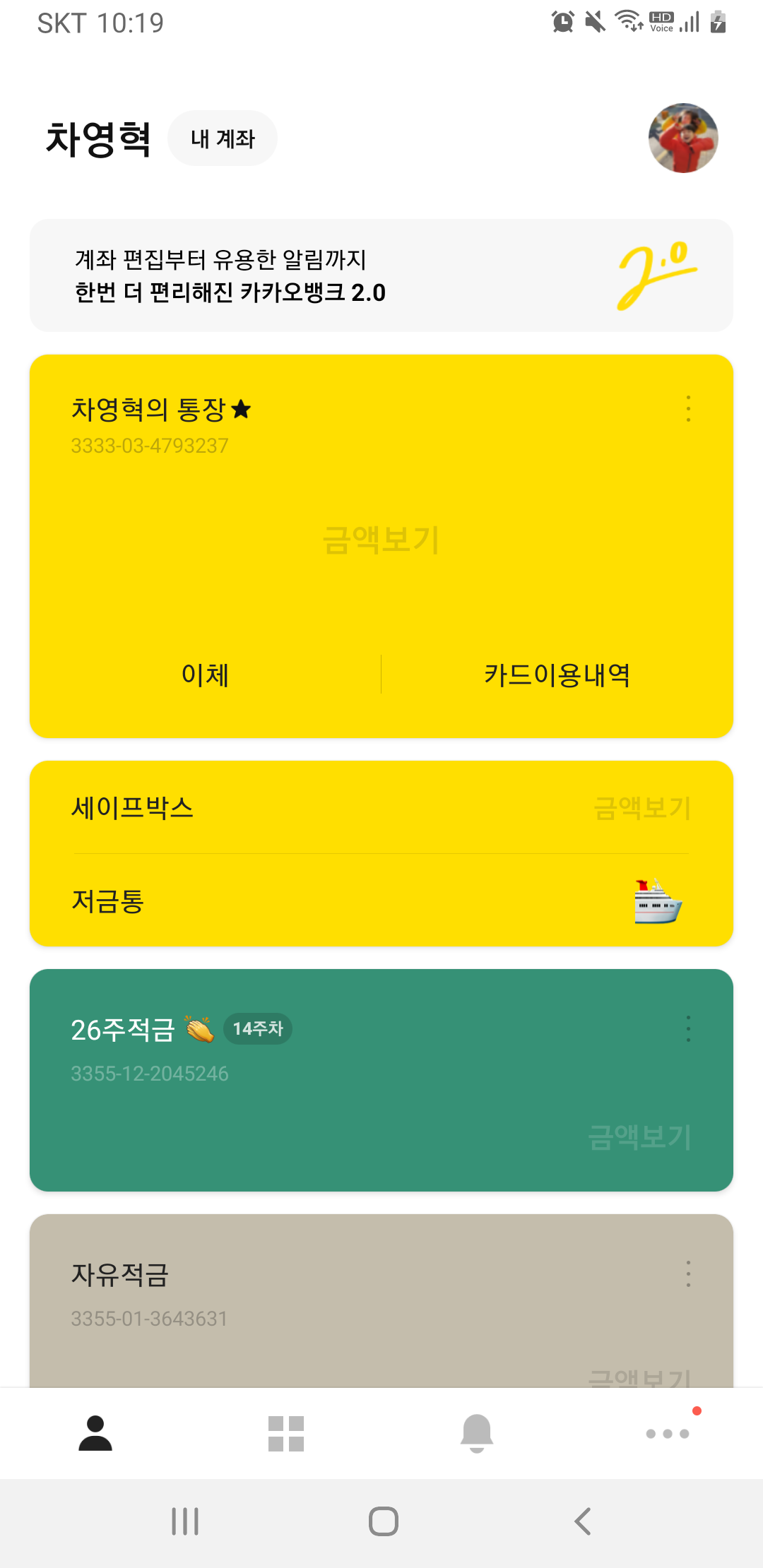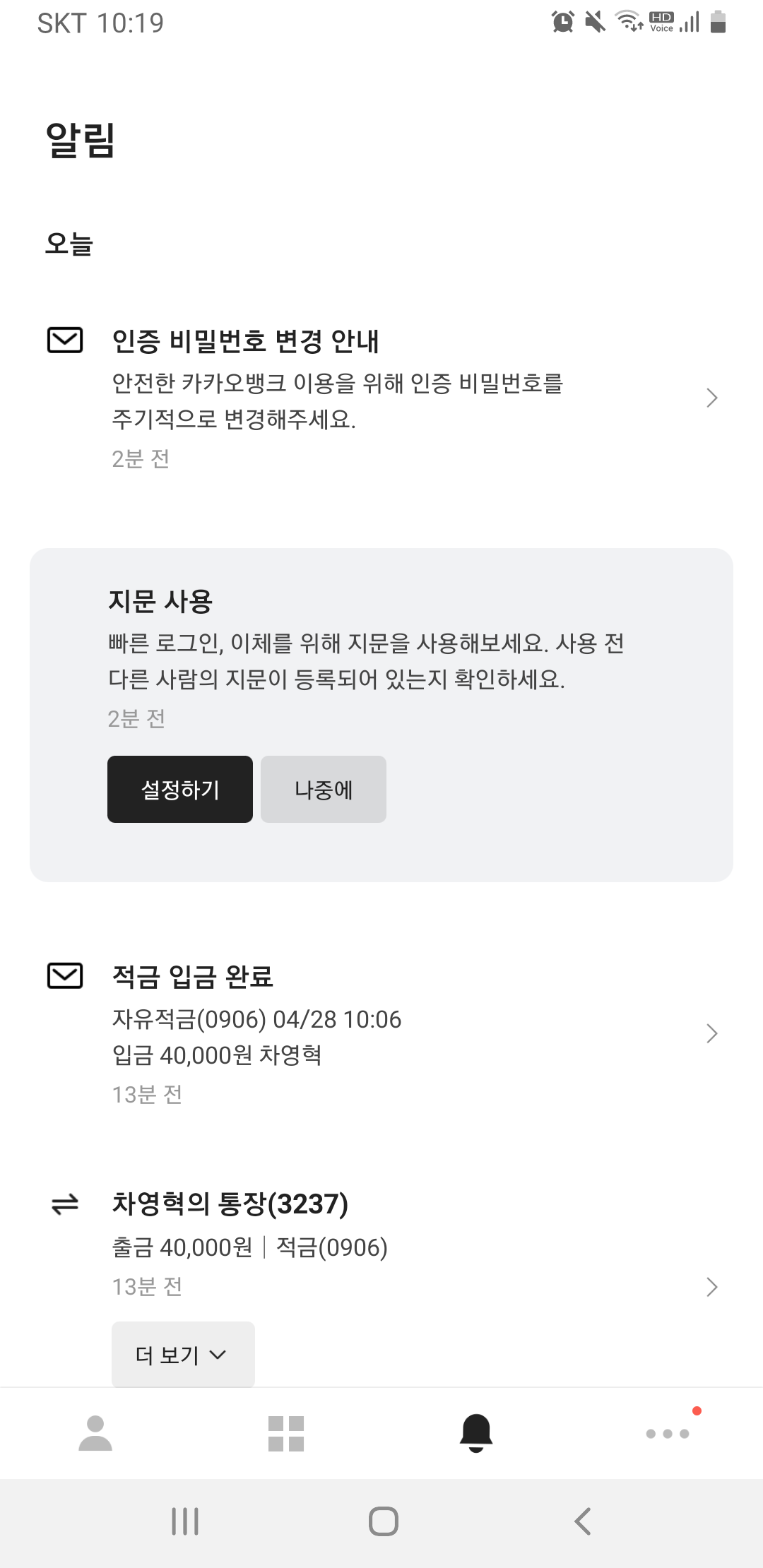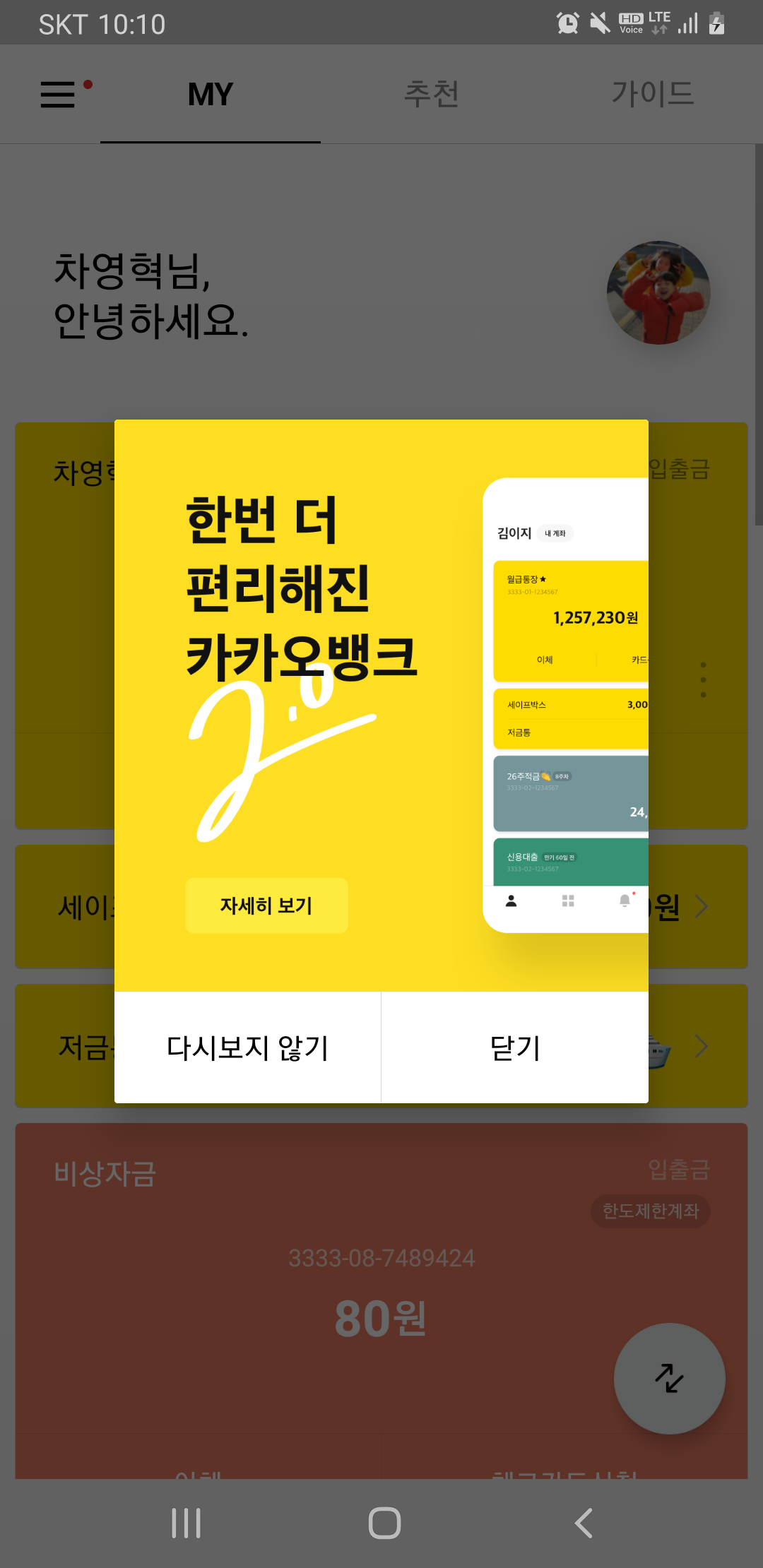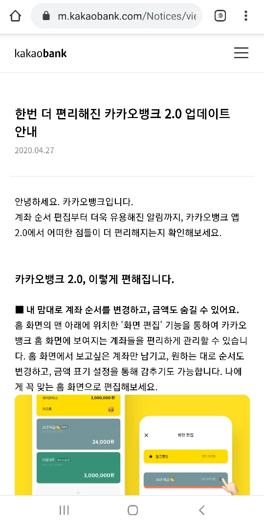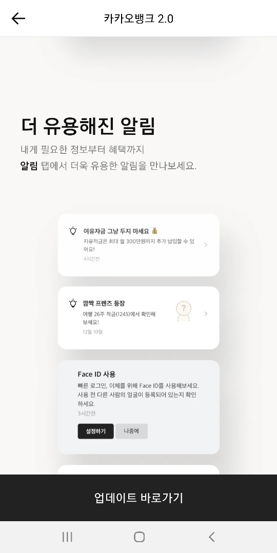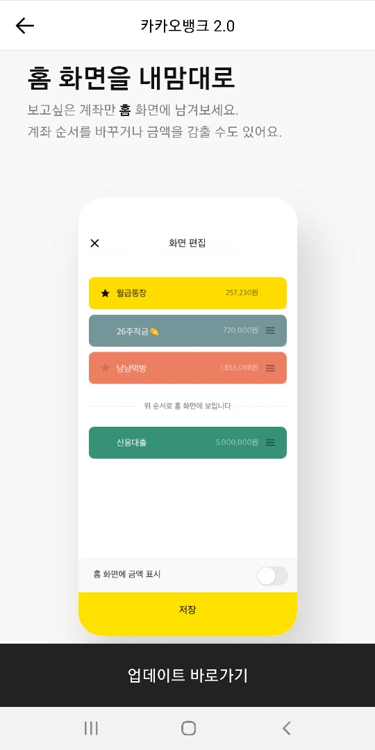 카뱅변신,업데이트,편리,카카오뱅크이점영,홈화면,알림