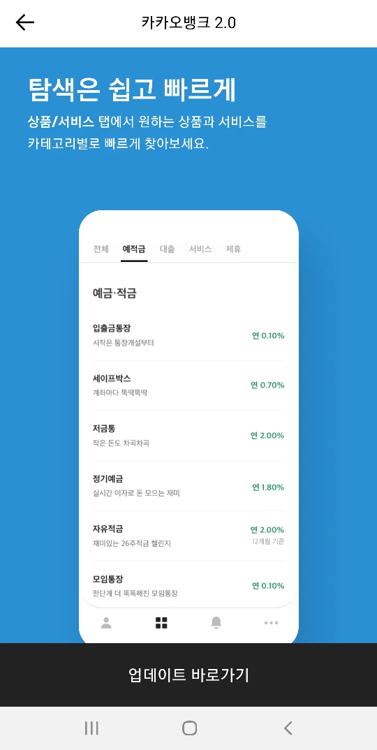카뱅 업데이트 메인 공지