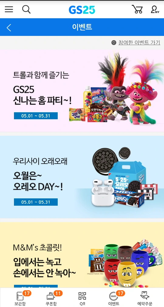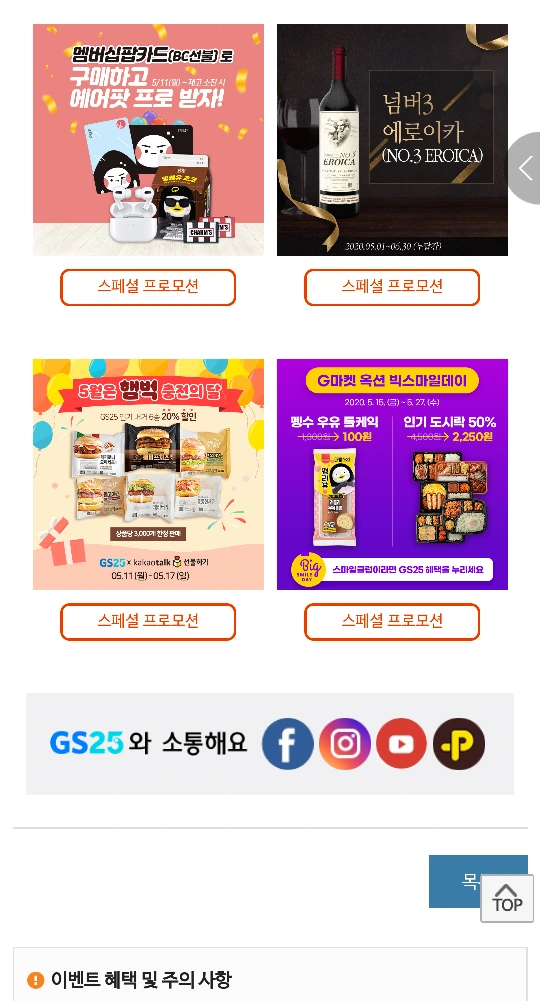 5월이라 그런지 GS25 앱이 업데이트되었다.