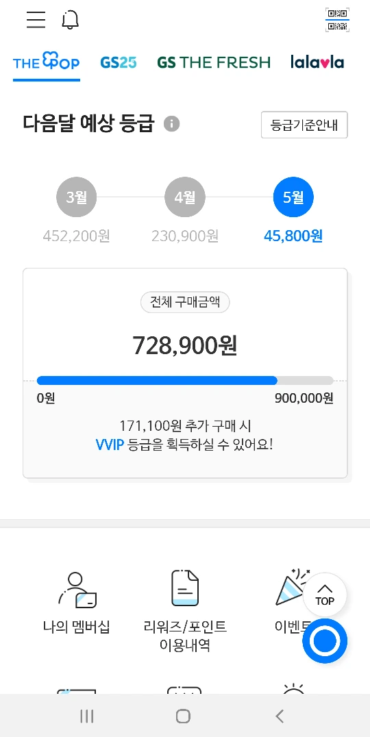 GS25 편의점 앱으로 거의 매일 방문이다.재택 피크 3월은 거의 45만 원이다.그리고 이벤트도 열심이다.5월 이벤트도 열심히