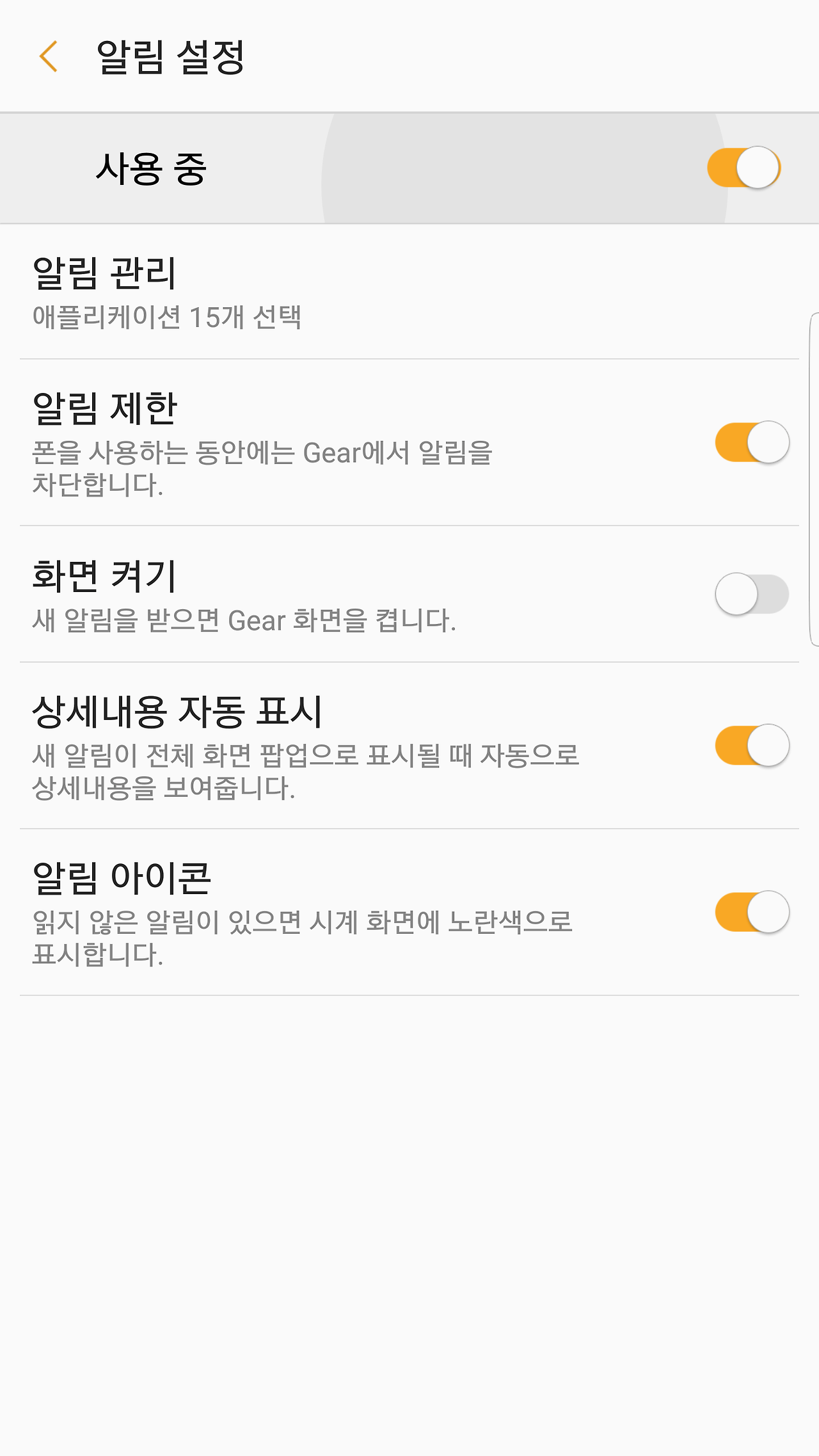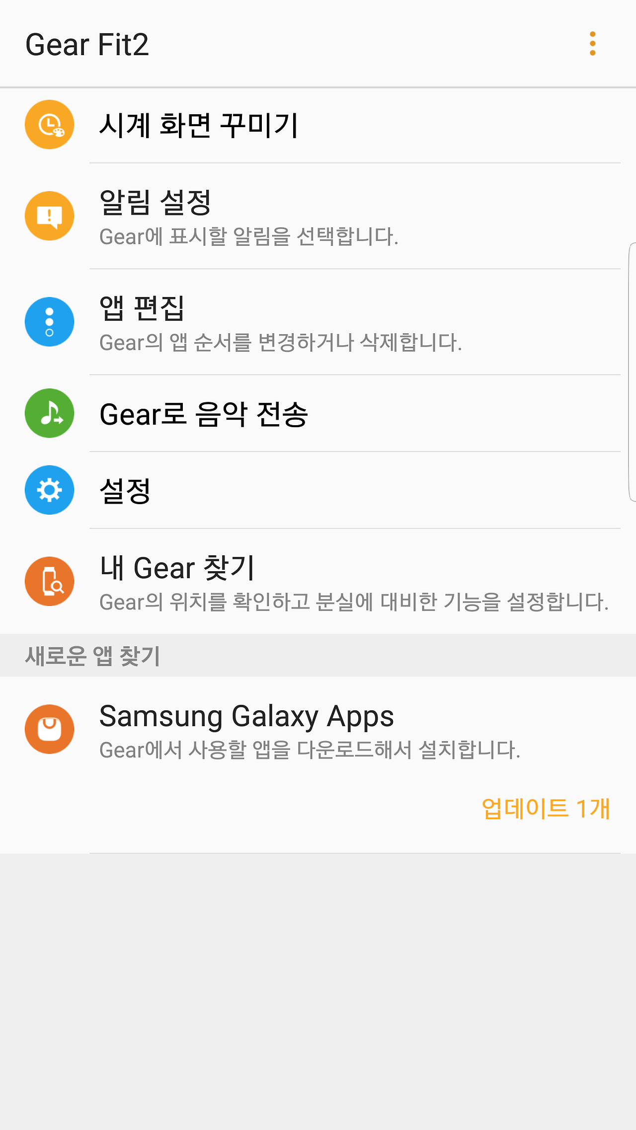 기어앱으로 기어핏2의 환경을 셋팅할 수 있다.