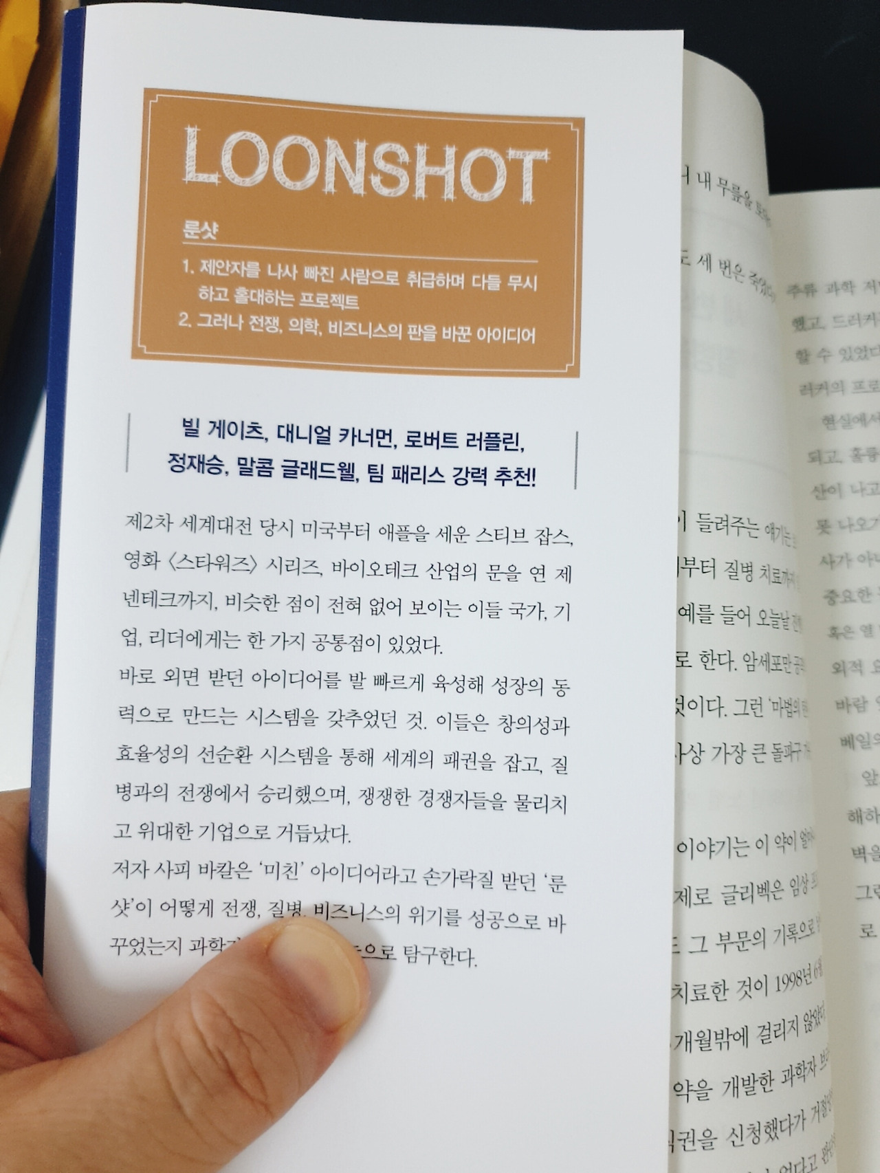 주말책,LOONSHOTS,독중감,아이디어,설계