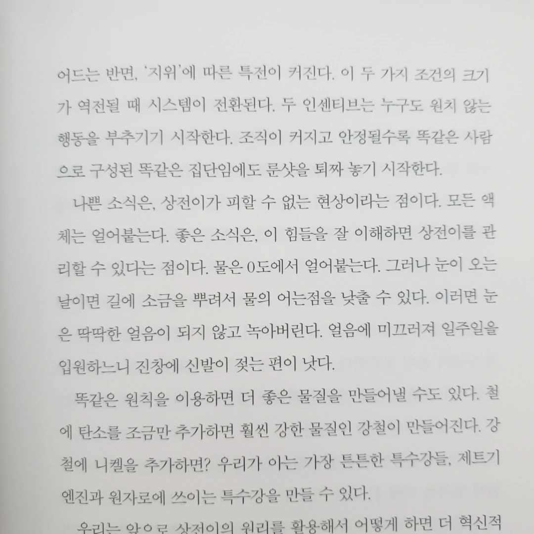 섭씨 0도 상태가 고착화 되지 않는 상태이다. 얼음으로 전환되지 않는 액체와 얼음의 중간자 변화를 관리하는 상태이다. 어느 순간이 되면 그것을 정점으로 여기고 고수하게 된다. 그것이 맹점이다.