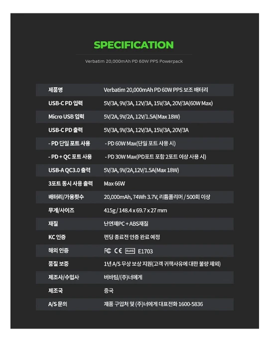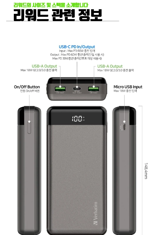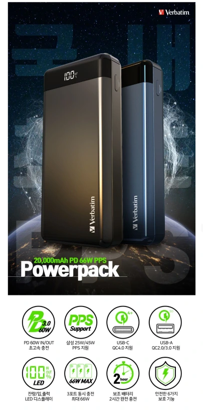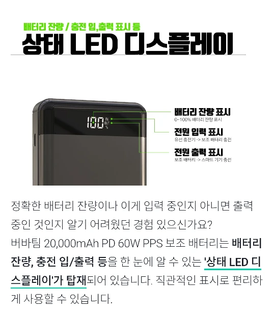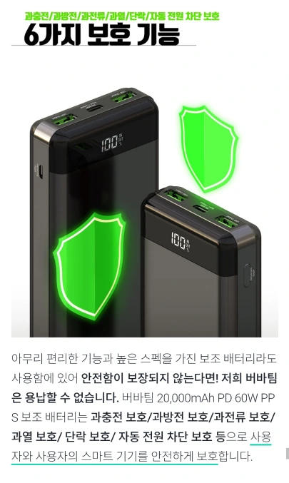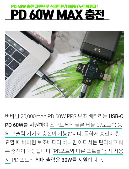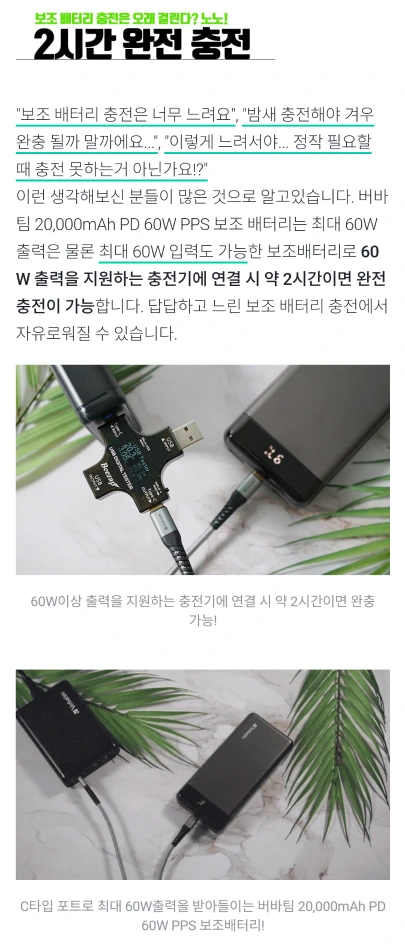 보조배터리는 결국 여행/외출 중에 '스마트폰 충전'에 가장 많이 사용합니다. 와디즈 최초 PPS 지원 버바팀 20,000mAh PD60W PPS 보조배터리로 빠른 충전을 즐기세요!